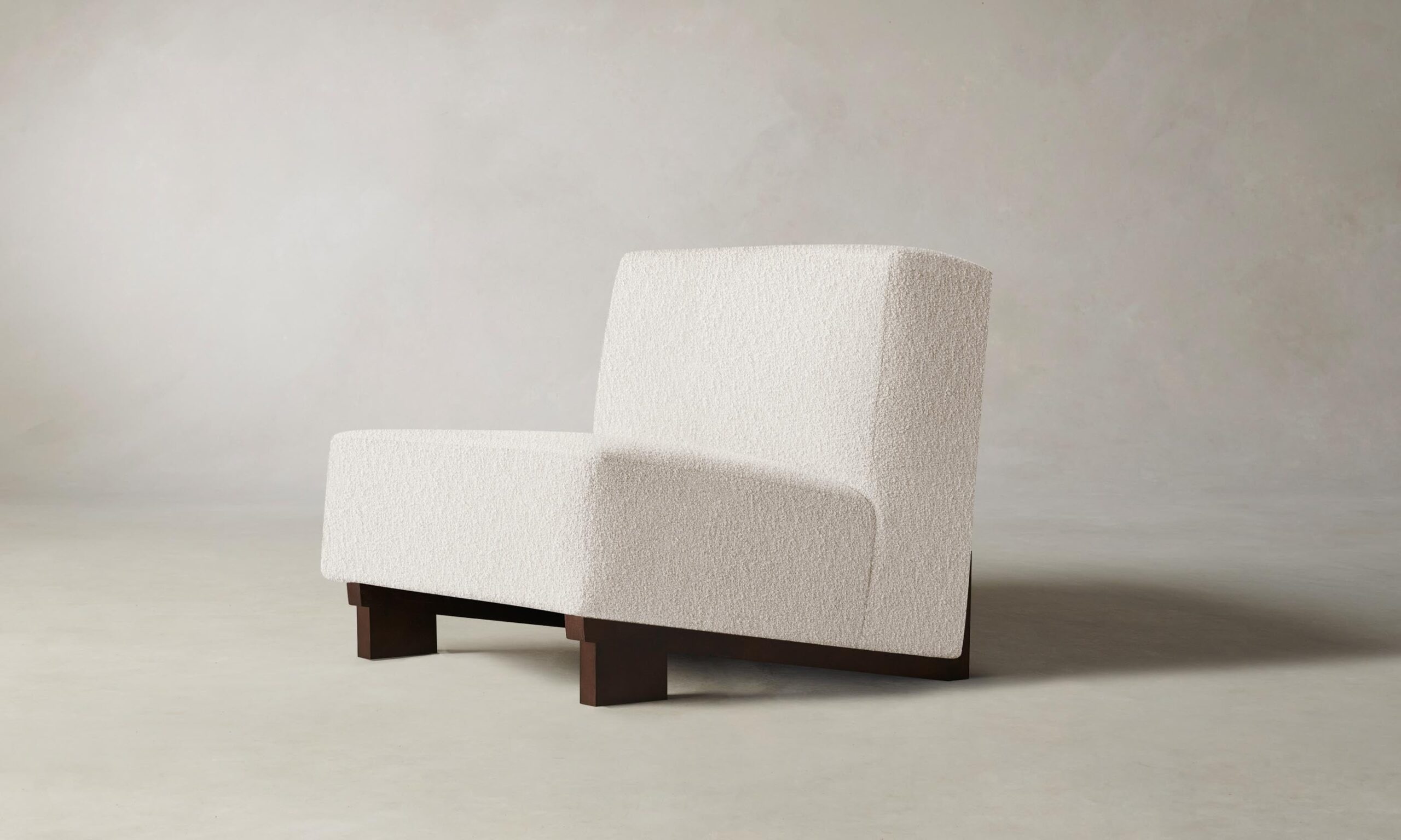 The Remsen chair’s bold proportions and streamlined silhouette are informed by Art Moderne design. It has a low-slung seat that sits at an angle atop a sculptural white oak base.