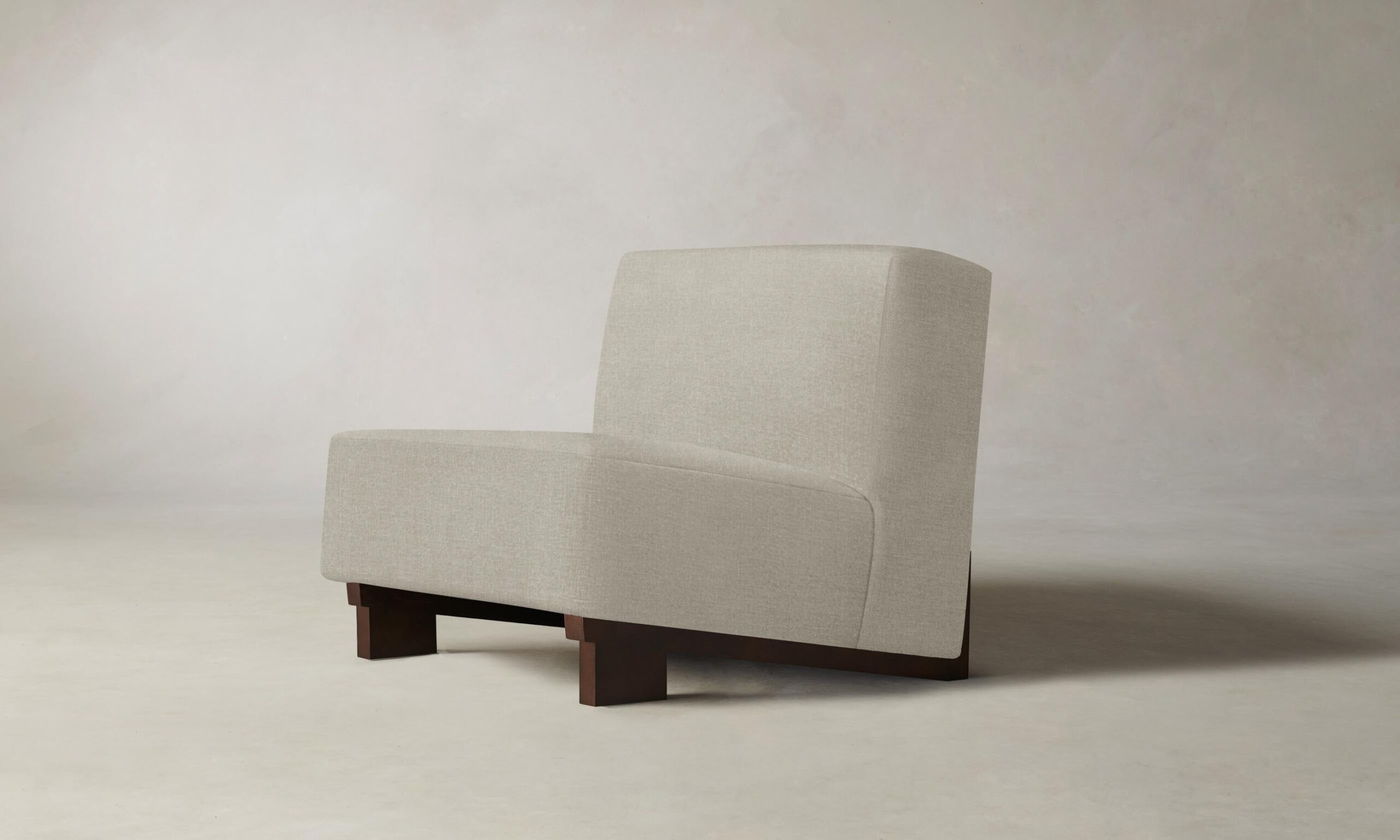 The Remsen chair’s bold proportions and streamlined silhouette are informed by Art Moderne design. It has a low-slung seat that sits at an angle atop a sculptural white oak base.