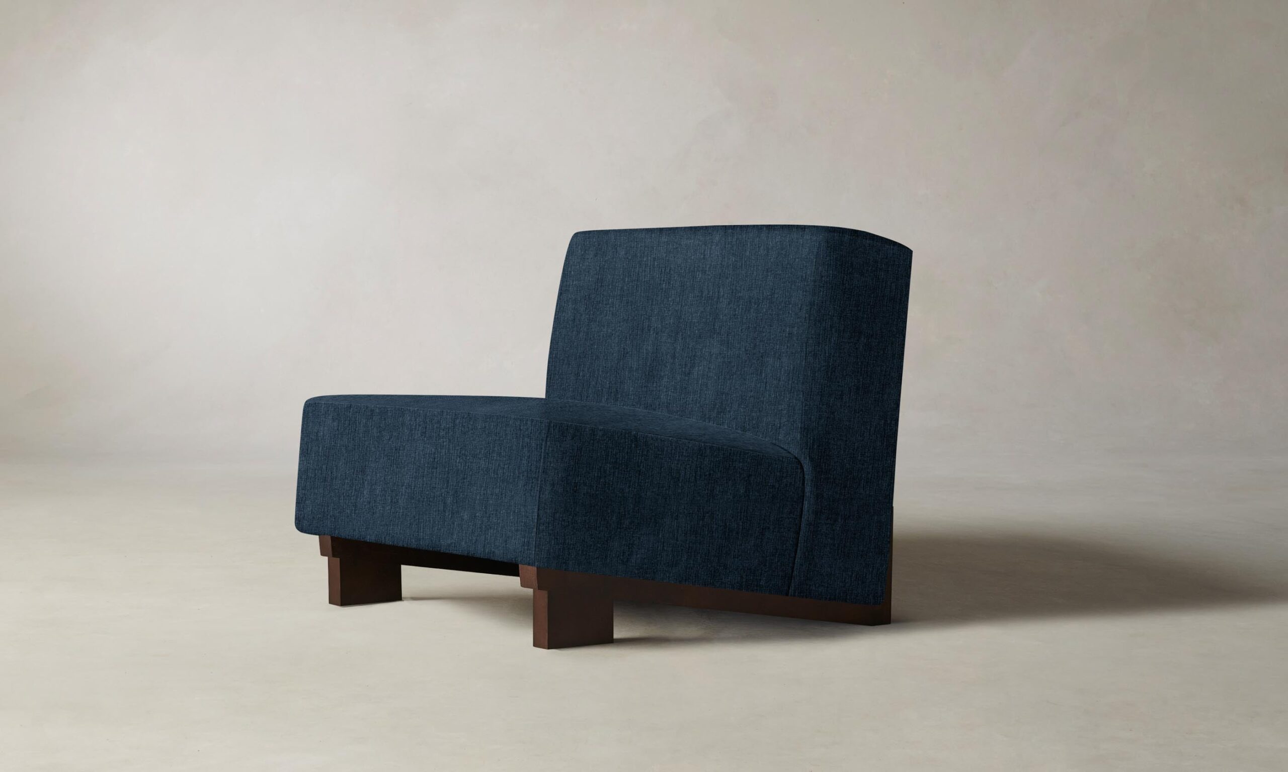 The Remsen chair’s bold proportions and streamlined silhouette are informed by Art Moderne design. It has a low-slung seat that sits at an angle atop a sculptural white oak base.