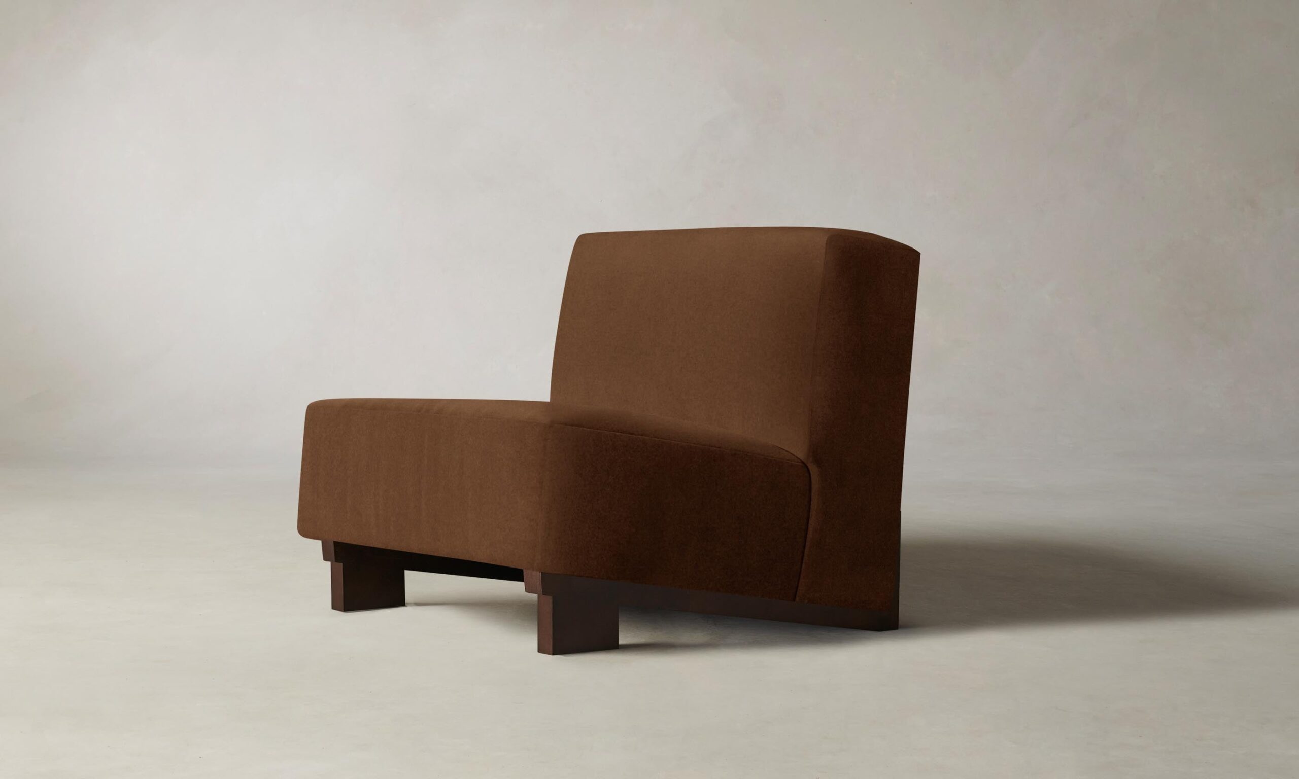 The Remsen chair’s bold proportions and streamlined silhouette are informed by Art Moderne design. It has a low-slung seat that sits at an angle atop a sculptural white oak base.
