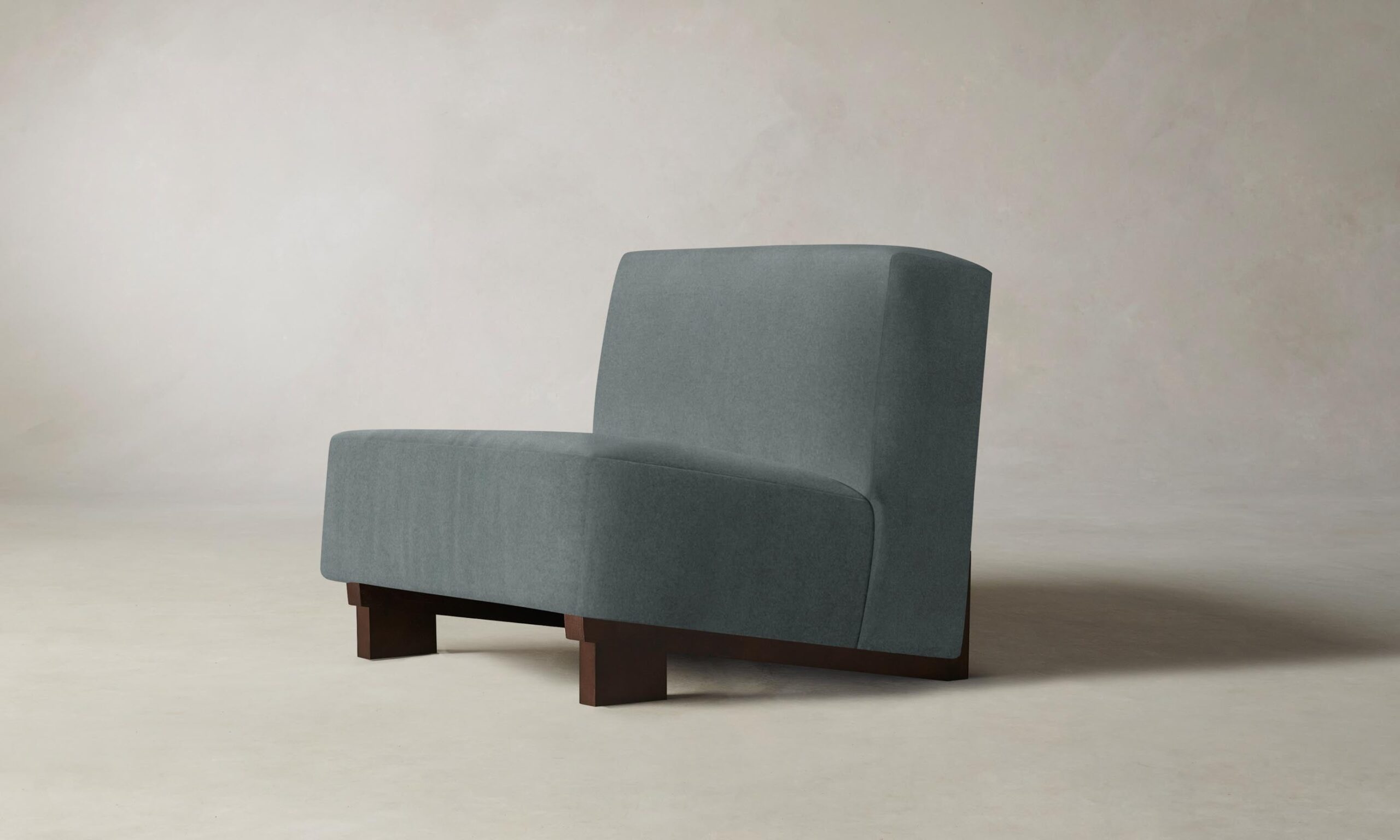 The Remsen chair’s bold proportions and streamlined silhouette are informed by Art Moderne design. It has a low-slung seat that sits at an angle atop a sculptural white oak base.