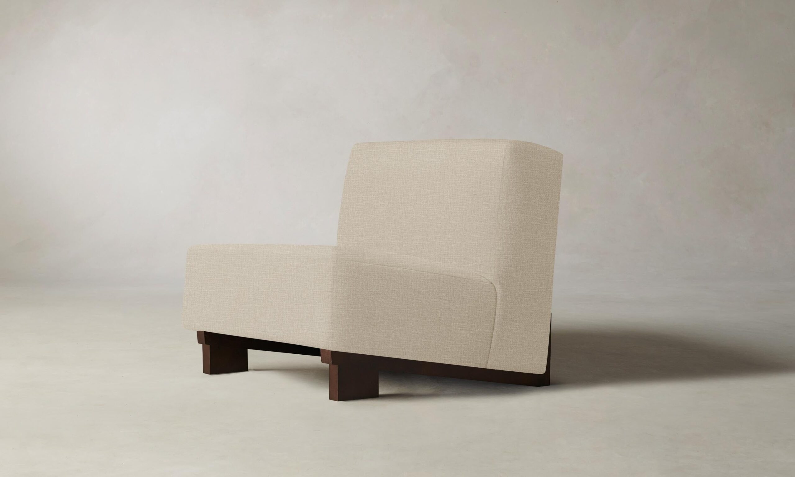 The Remsen chair’s bold proportions and streamlined silhouette are informed by Art Moderne design. It has a low-slung seat that sits at an angle atop a sculptural white oak base.