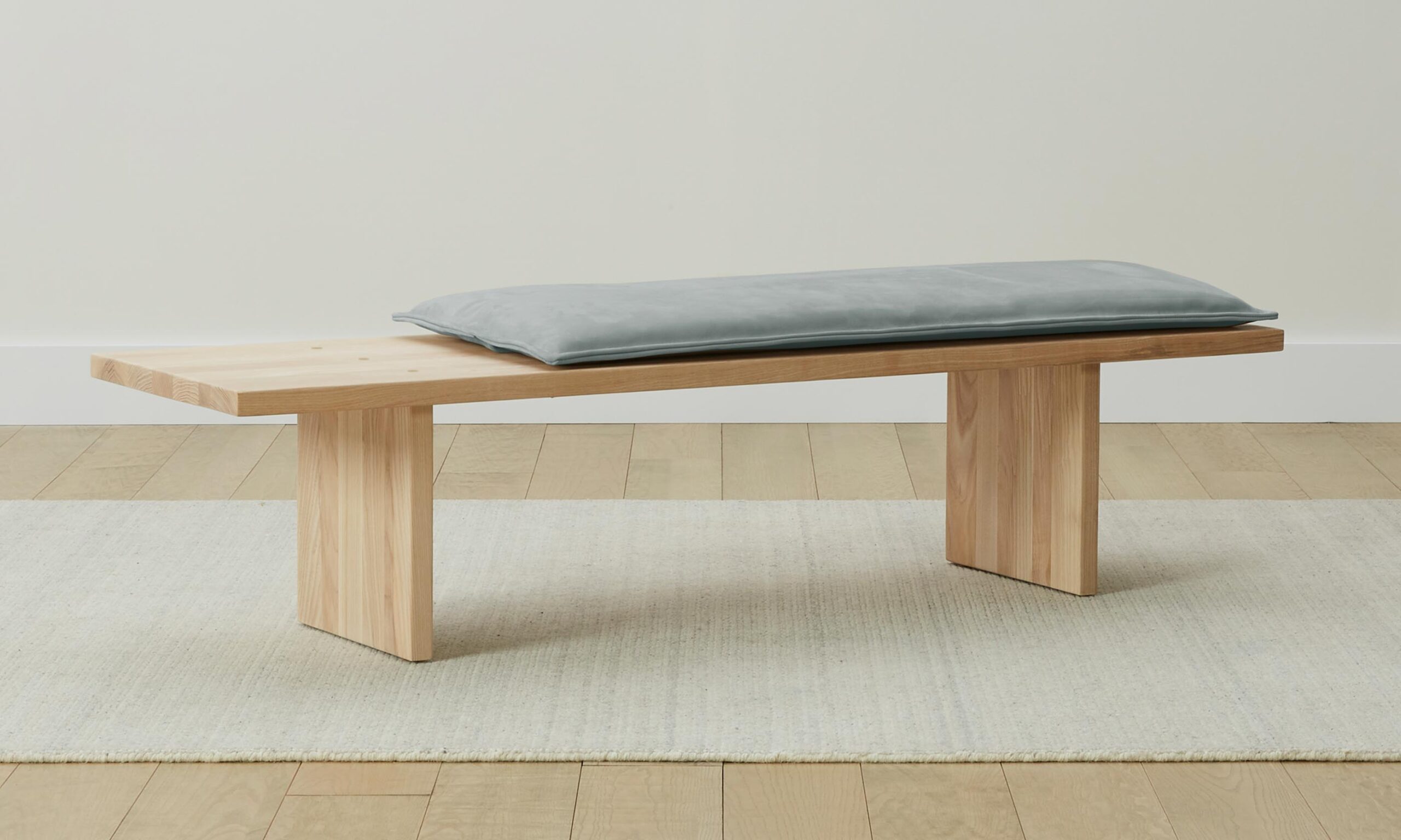 The Reyes bench underscores the allure of honest materials. Its linear ash seat is detailed with brass inlays that add touches of warmth, while the optional Nubuck Leather cushion offers a sumptuous layer of softness.