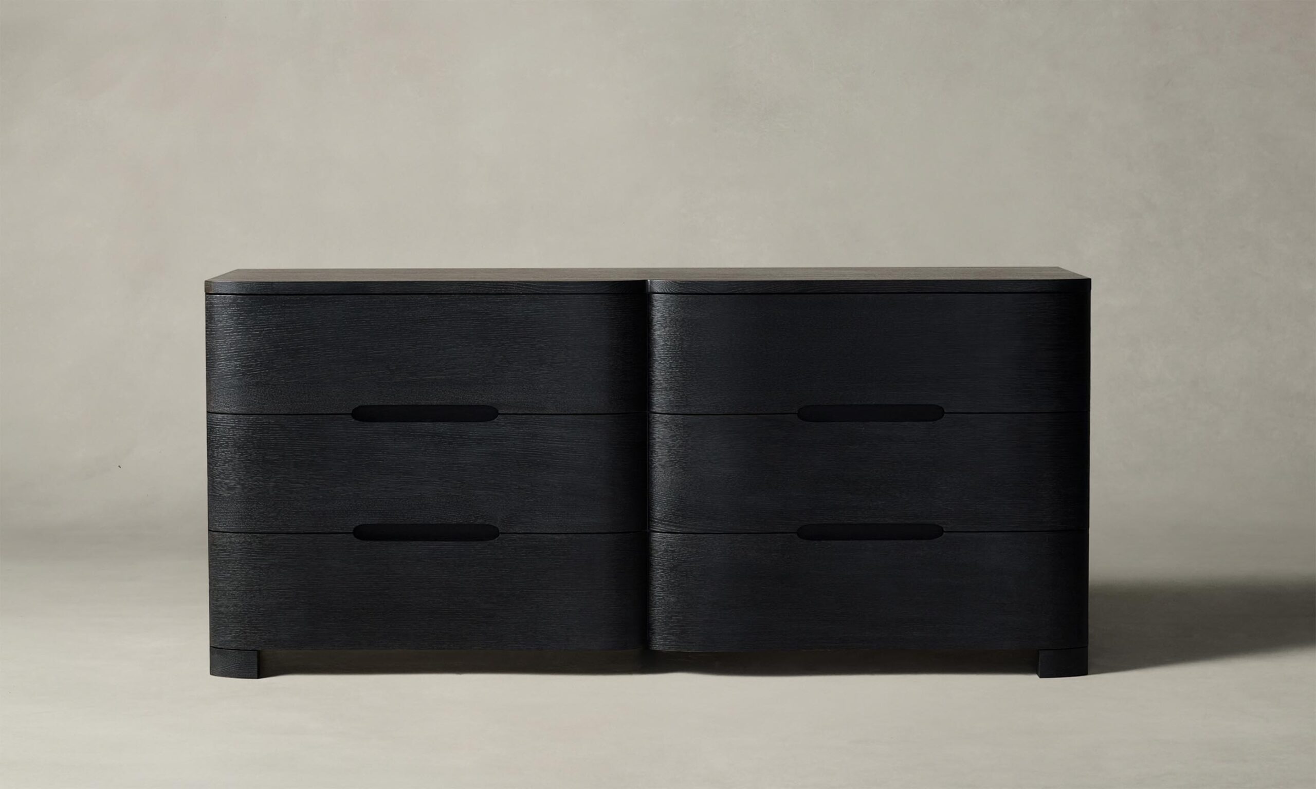 The Rivington 6-drawer dresser pays tribute to postmodernism with its liquid curves and contours. The design is enveloped in cerused white oak veneer that underscores the softness of the silhouette.