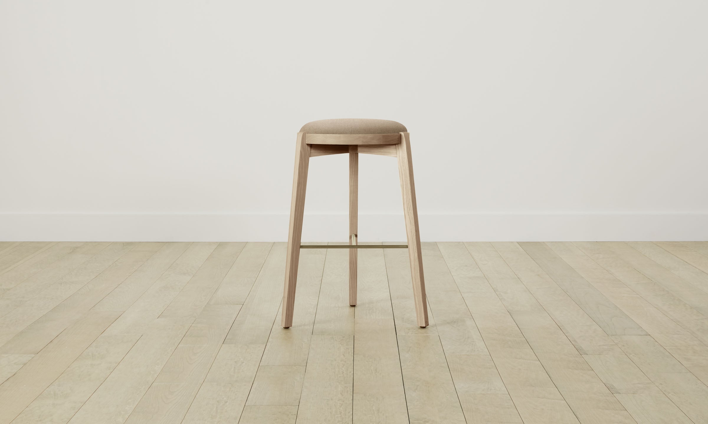 The Stanton bar and counter stool’s simple silhouette brings a light and airy quality into your space. It has a tightly upholstered seat, slender ash legs, and a metal footrest that adds textural contrast.