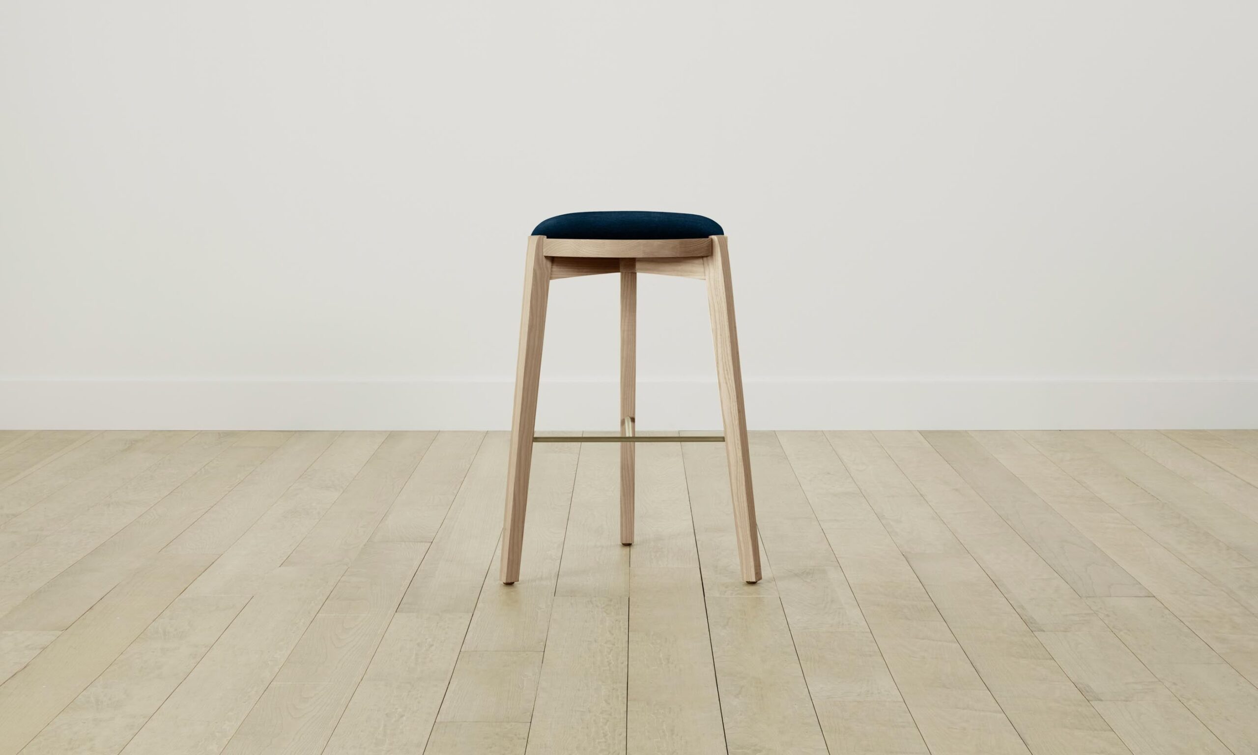 The Stanton bar and counter stool’s simple silhouette brings a light and airy quality into your space. It has a tightly upholstered seat, slender ash legs, and a metal footrest that adds textural contrast.