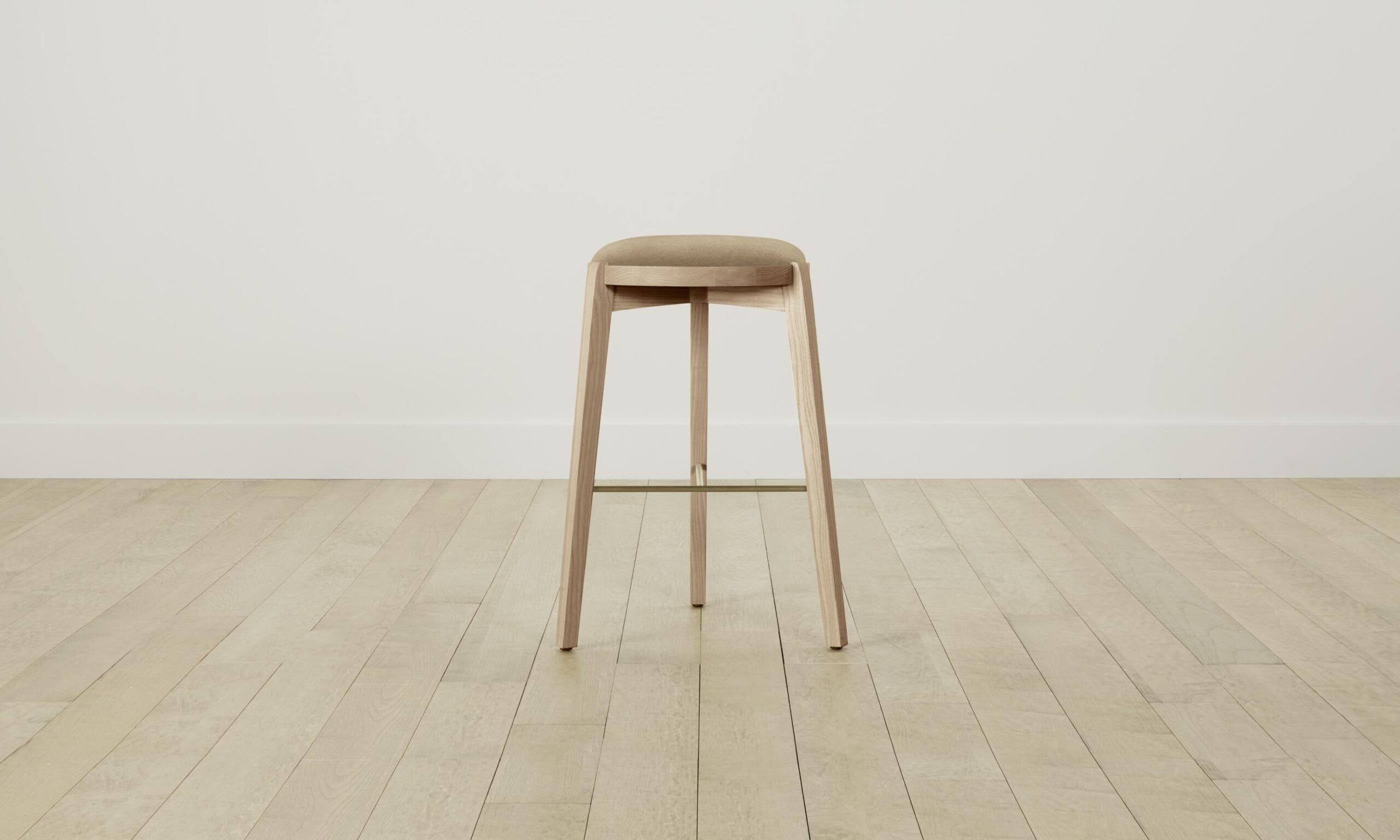 The Stanton bar and counter stool’s simple silhouette brings a light and airy quality into your space. It has a tightly upholstered seat, slender ash legs, and a metal footrest that adds textural contrast.