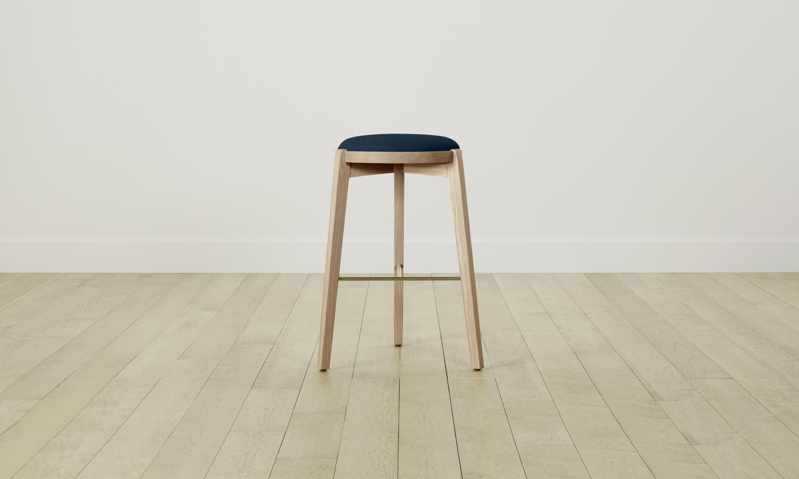 The Stanton bar and counter stool’s simple silhouette brings a light and airy quality into your space. It has a tightly upholstered seat, slender ash legs, and a metal footrest that adds textural contrast.