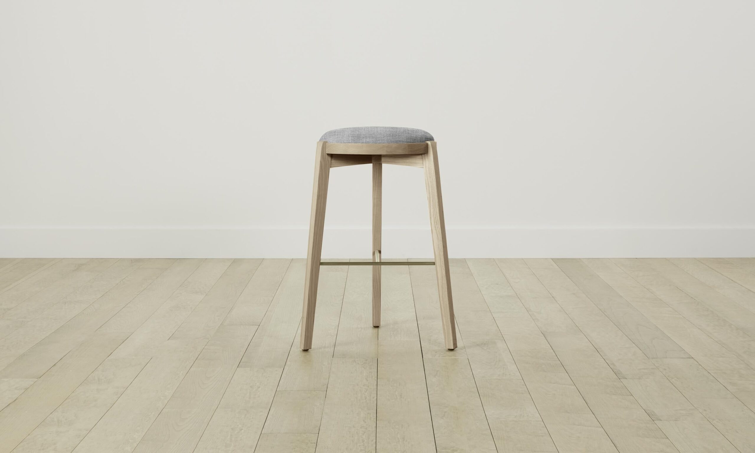 The Stanton bar and counter stool’s simple silhouette brings a light and airy quality into your space. It has a tightly upholstered seat, slender ash legs, and a metal footrest that adds textural contrast.
