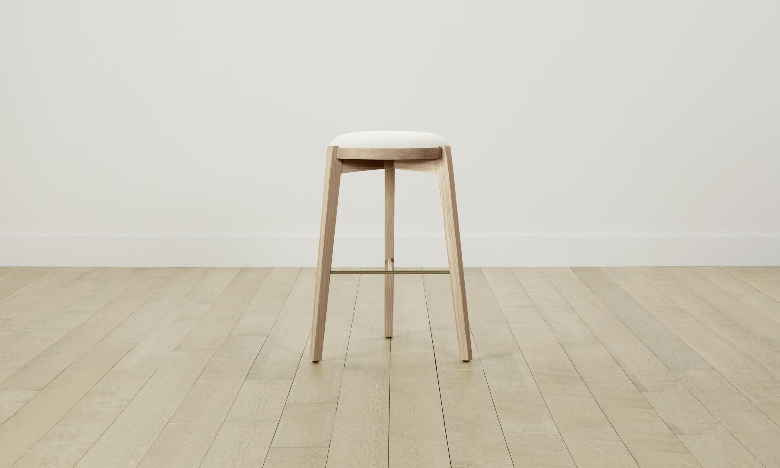 The Stanton bar and counter stool’s simple silhouette brings a light and airy quality into your space. It has a tightly upholstered seat, slender ash legs, and a metal footrest that adds textural contrast.
