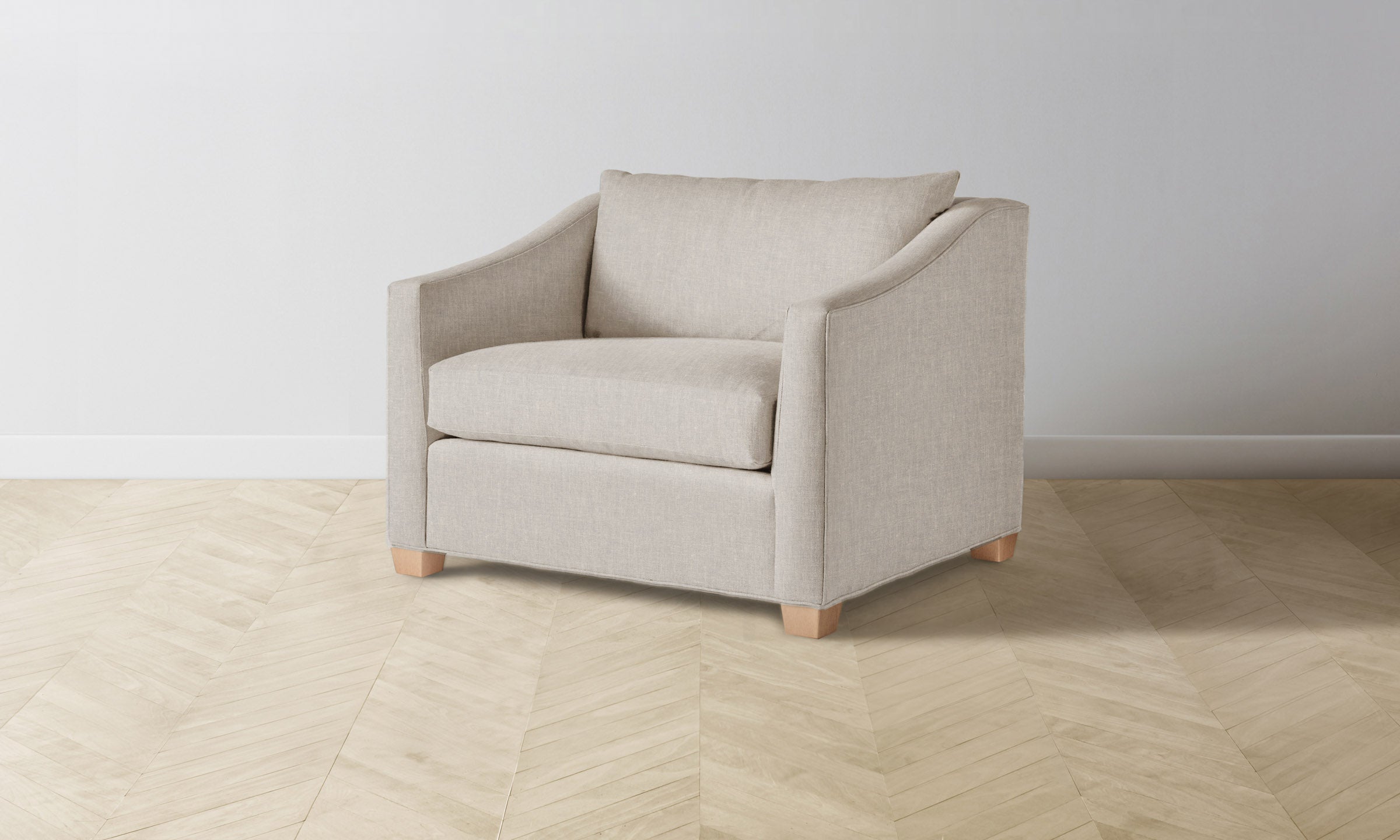 At once contemporary and classic, the Sullivan chair-and-a-half is a timeless addition to the home. It has a deep seat framed by sloped shelter arms and sits atop trapezoidal legs for a bold touch.