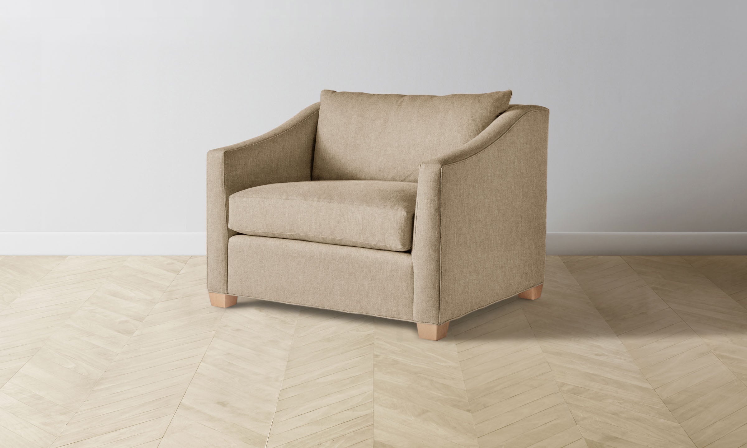 At once contemporary and classic, the Sullivan chair-and-a-half is a timeless addition to the home. It has a deep seat framed by sloped shelter arms and sits atop trapezoidal legs for a bold touch.
