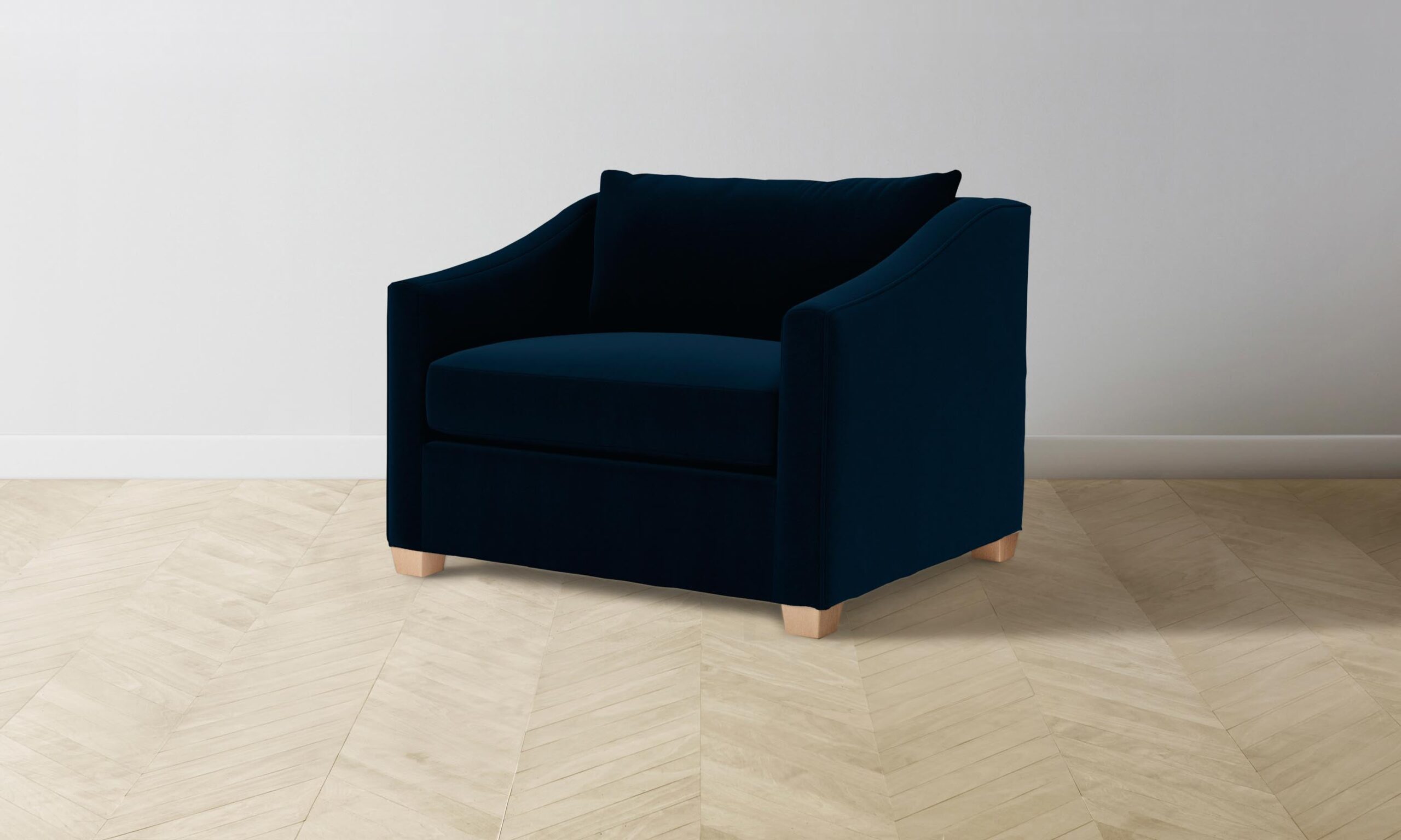 At once contemporary and classic, the Sullivan chair-and-a-half is a timeless addition to the home. It has a deep seat framed by sloped shelter arms and sits atop trapezoidal legs for a bold touch.