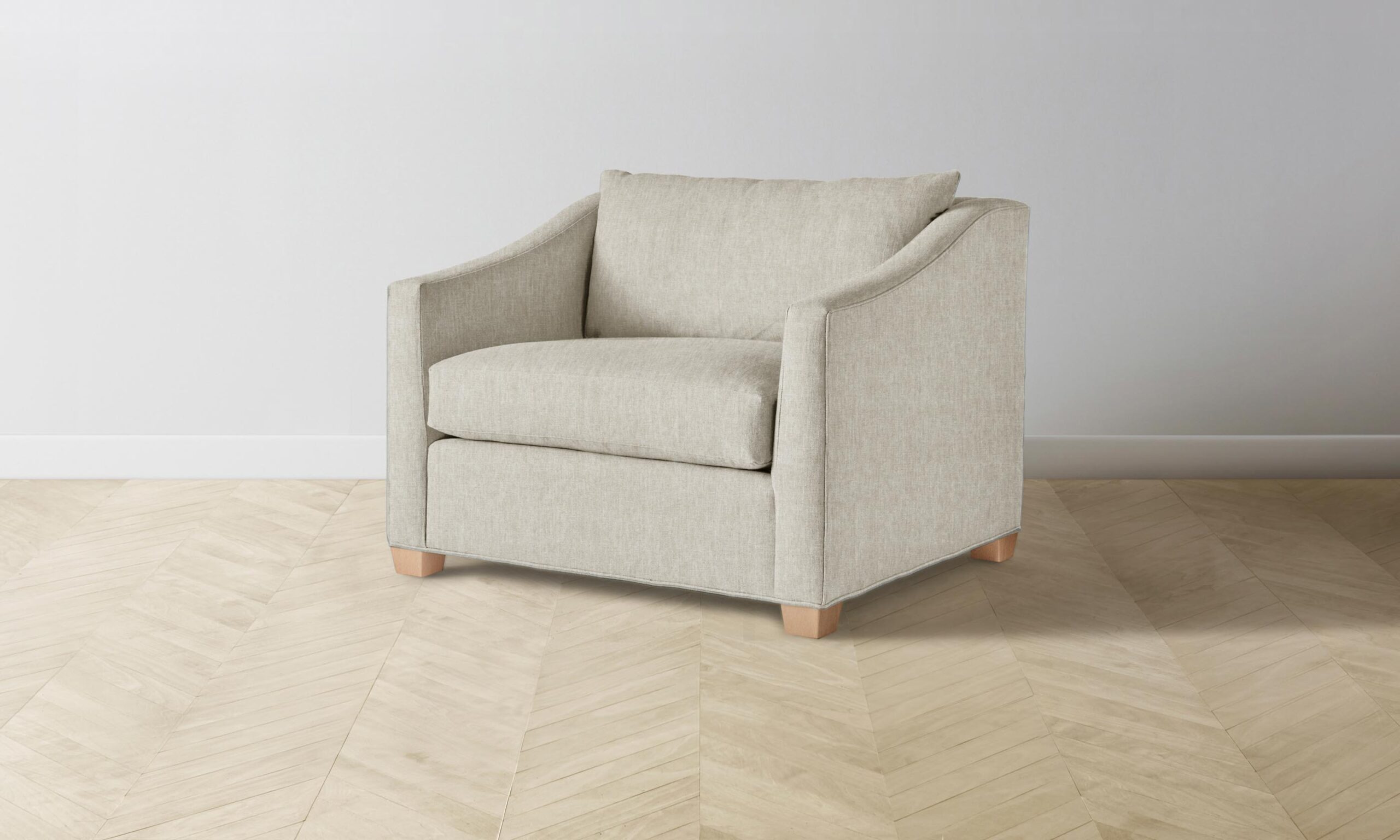 At once contemporary and classic, the Sullivan chair-and-a-half is a timeless addition to the home. It has a deep seat framed by sloped shelter arms and sits atop trapezoidal legs for a bold touch.