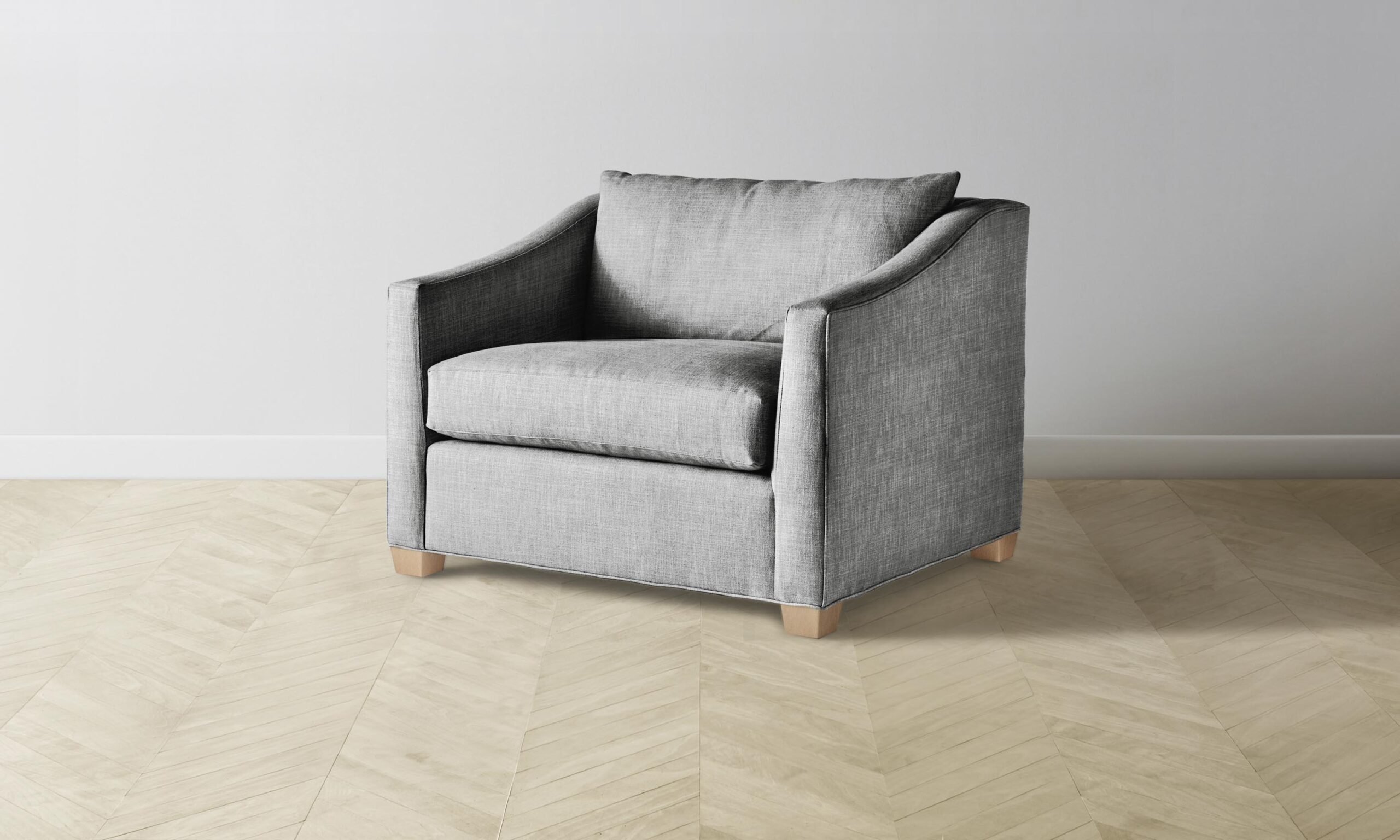 At once contemporary and classic, the Sullivan chair-and-a-half is a timeless addition to the home. It has a deep seat framed by sloped shelter arms and sits atop trapezoidal legs for a bold touch.