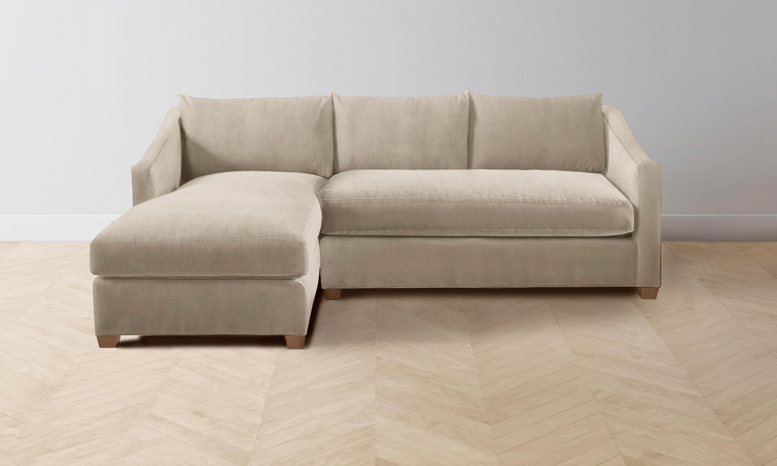 At once contemporary and classic, the Sullivan sectional is a timeless addition to the home. It has a deep seat framed by sloped shelter arms and sits atop trapezoidal legs for a bold touch.