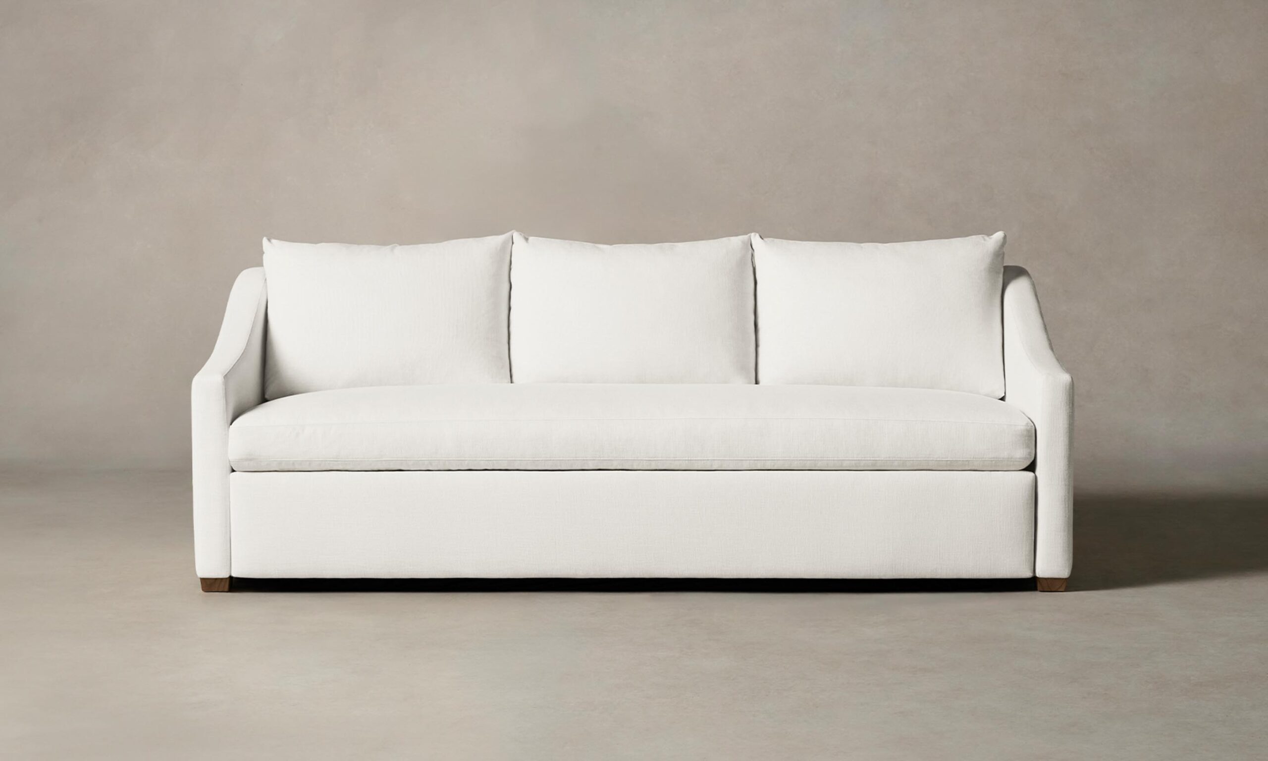The Sullivan sleeper has sloped arms, perfectly proportioned cushions, and exquisite tailoring—just like the original sofa. Concealed within the seat, a sleep system sets the scene for a restful night.