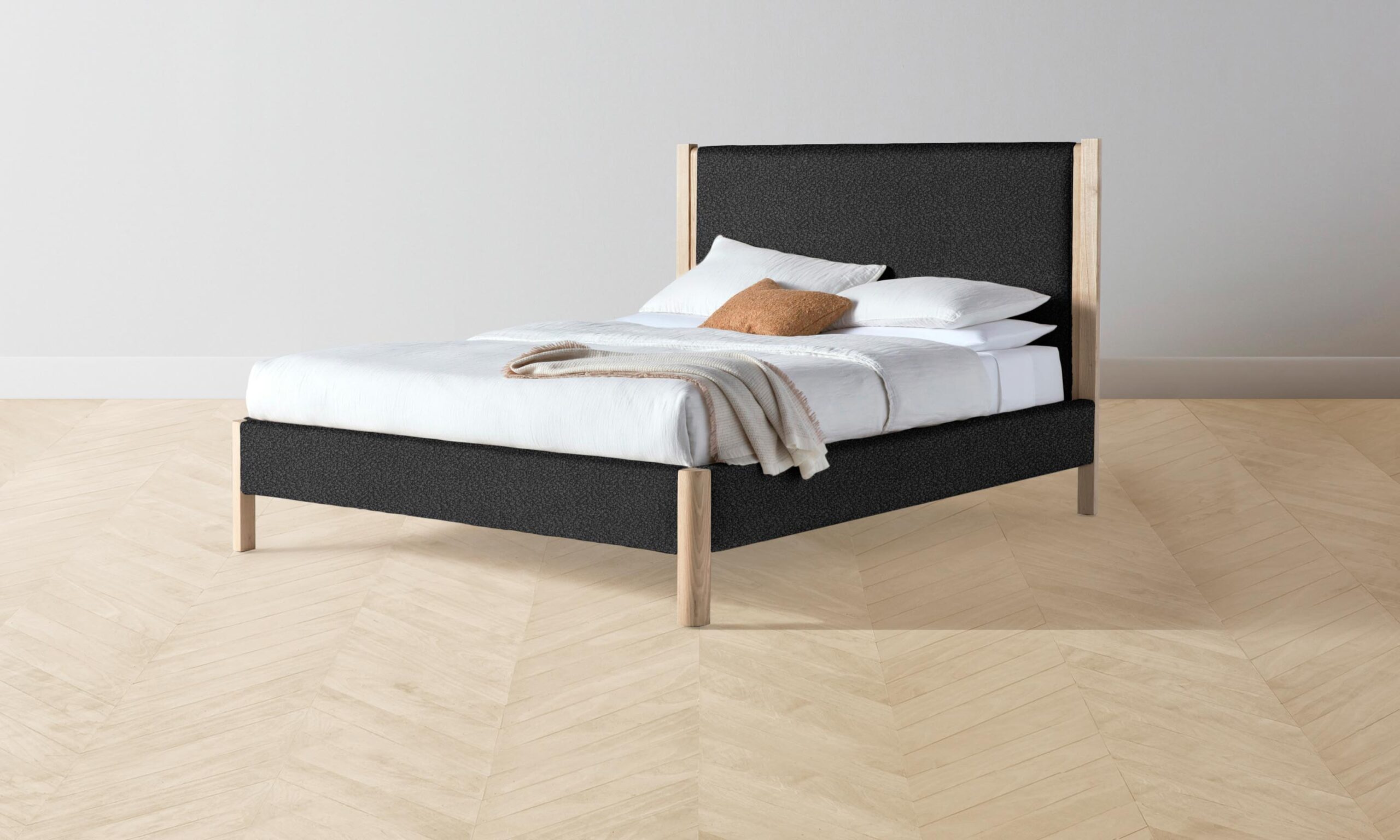 The Thompson bed is an expression of graceful simplicity. It has an ash frame with rounded corners and neat upholstery along the headboard, foot rail, and sides, creating a perfect balance of rigidity and softness.