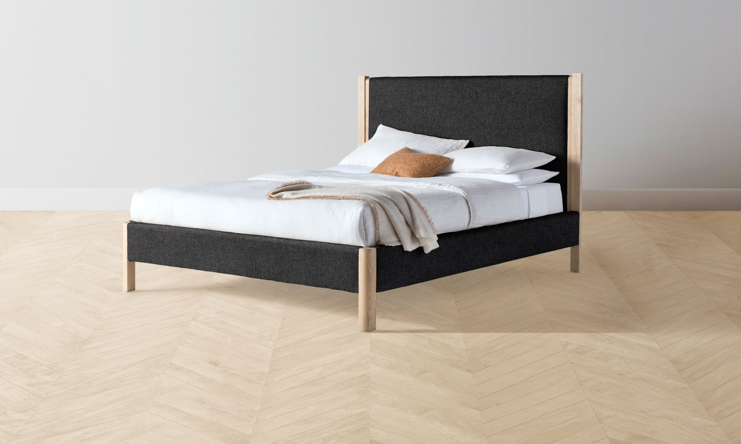 The Thompson bed is an expression of graceful simplicity. It has an ash frame with rounded corners and neat upholstery along the headboard, foot rail, and sides, creating a perfect balance of rigidity and softness.