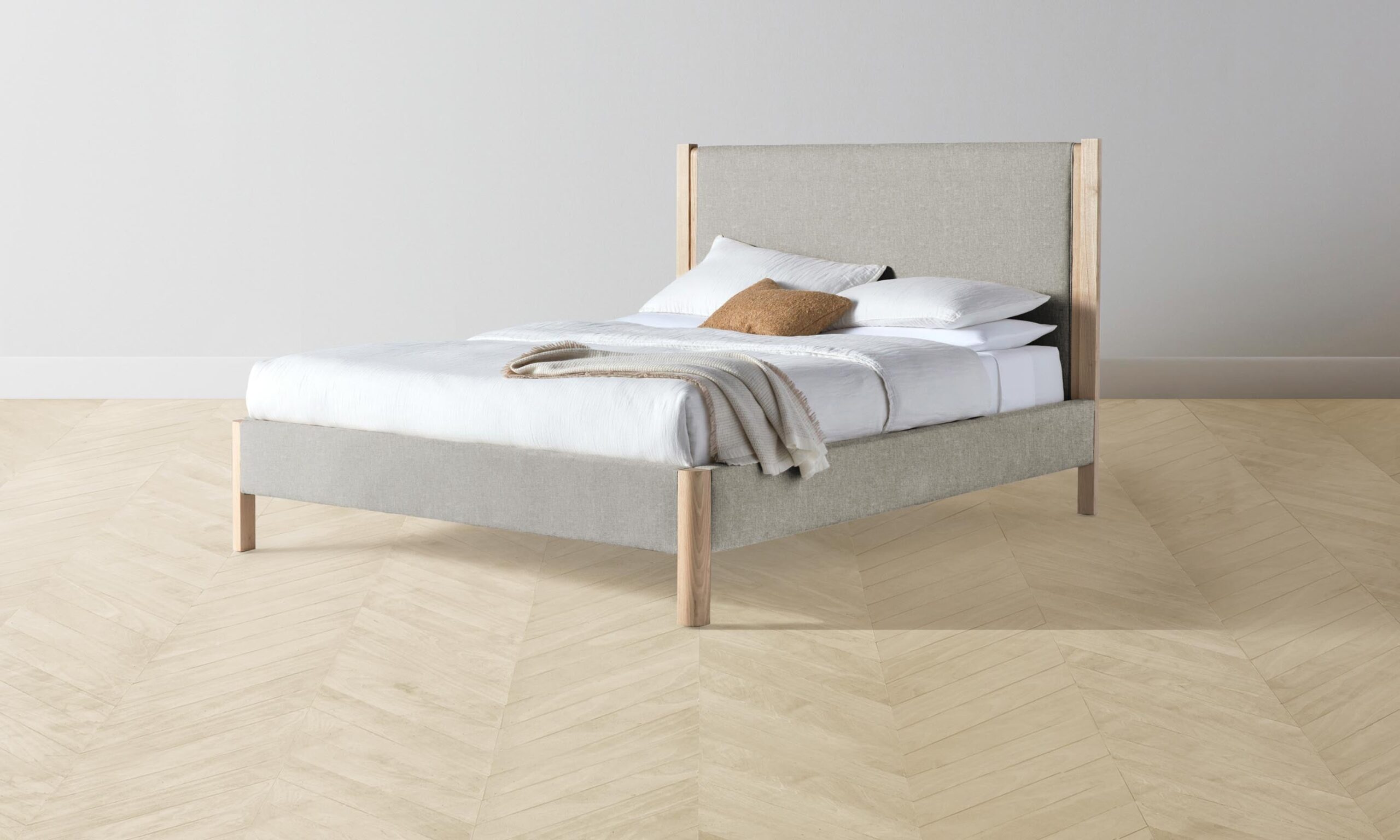 The Thompson bed is an expression of graceful simplicity. It has an ash frame with rounded corners and neat upholstery along the headboard, foot rail, and sides, creating a perfect balance of rigidity and softness.