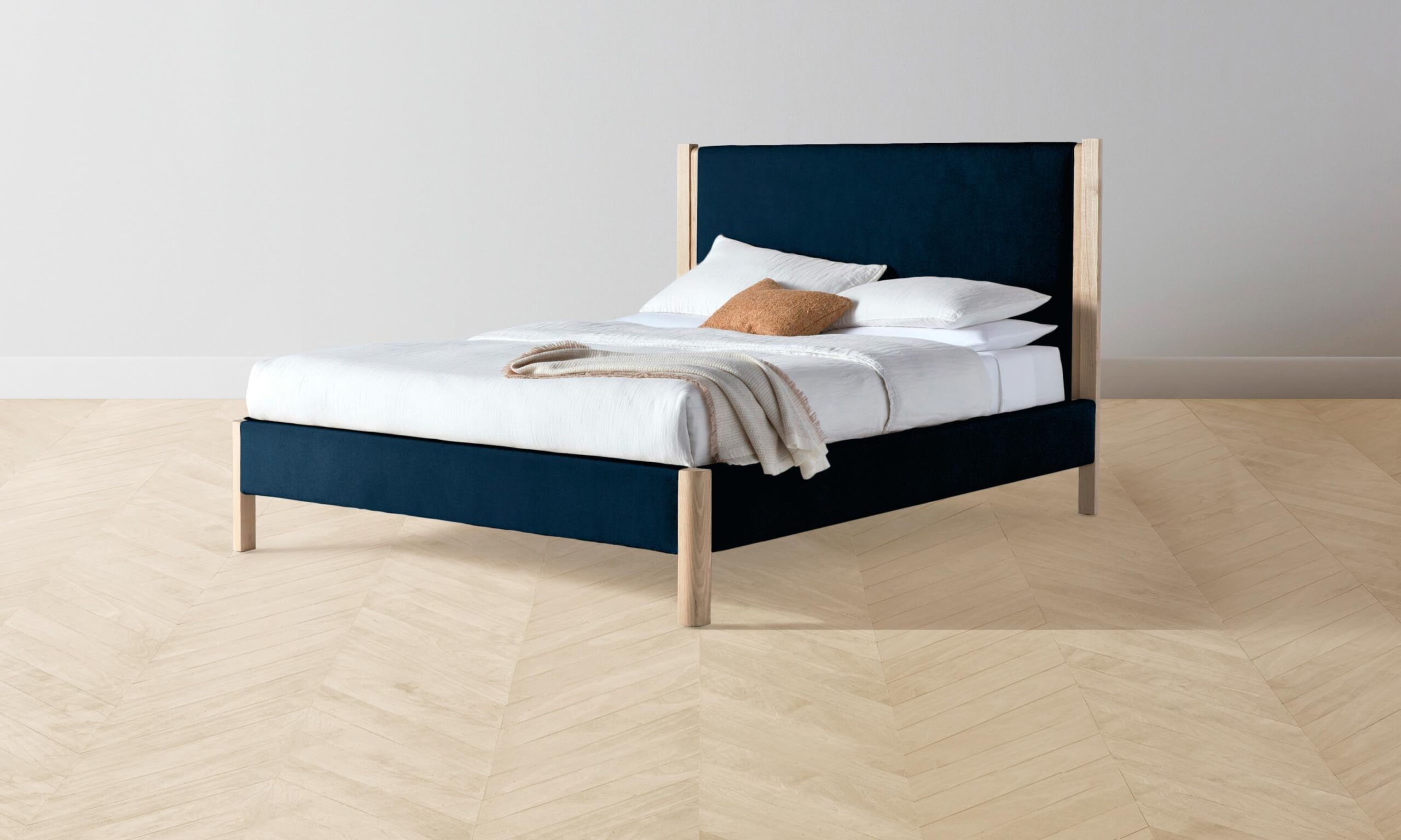 The Thompson bed is an expression of graceful simplicity. It has an ash frame with rounded corners and neat upholstery along the headboard, foot rail, and sides, creating a perfect balance of rigidity and softness.