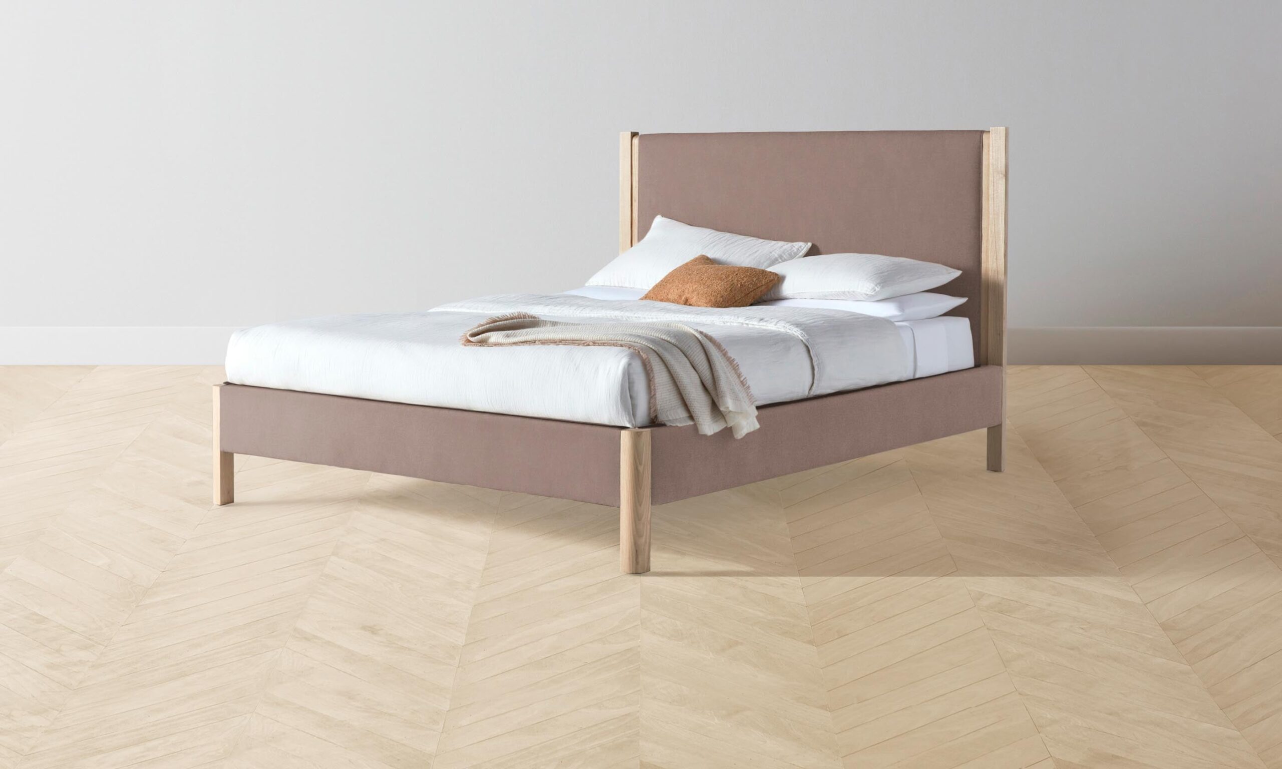 The Thompson bed is an expression of graceful simplicity. It has an ash frame with rounded corners and neat upholstery along the headboard, foot rail, and sides, creating a perfect balance of rigidity and softness.