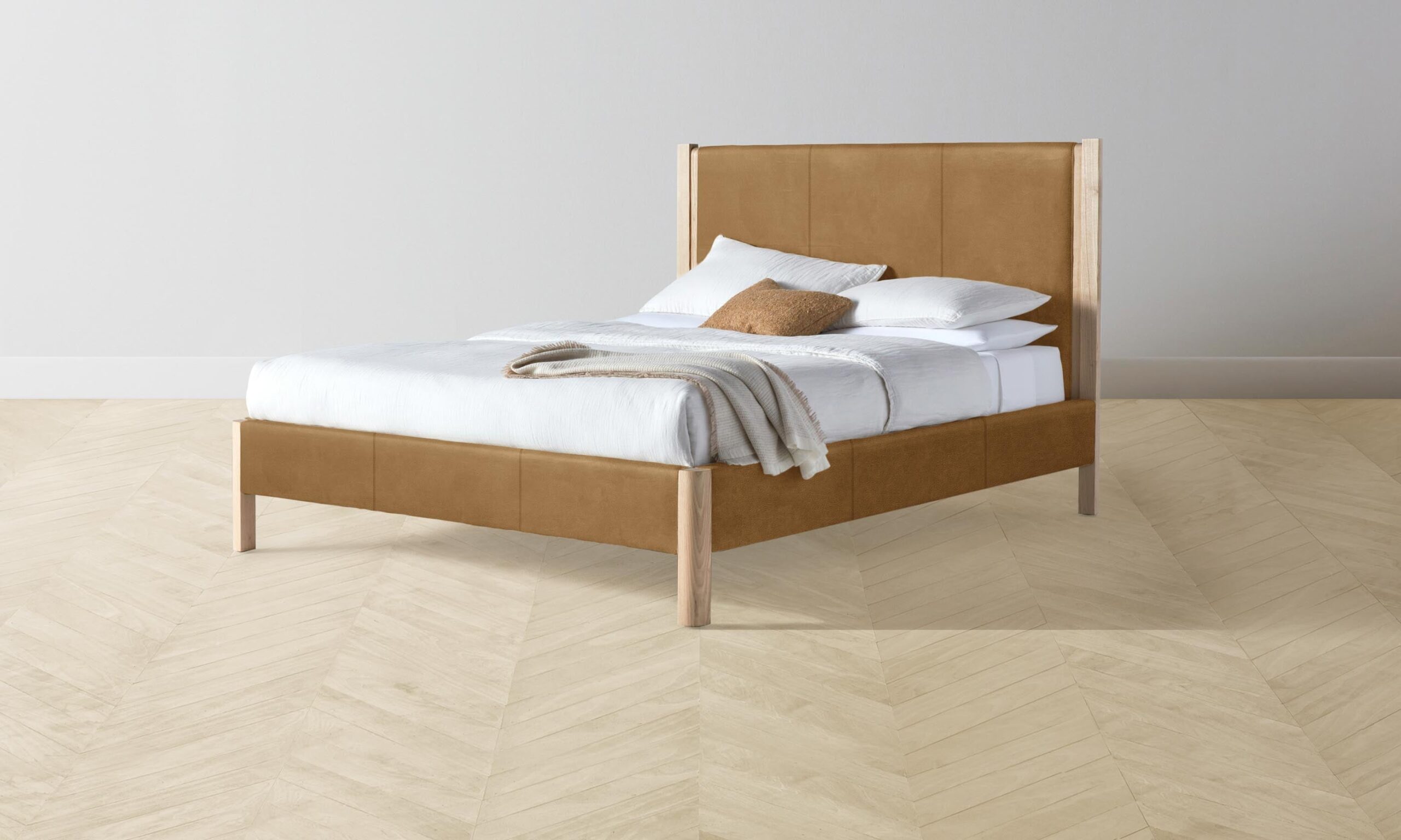 The Thompson bed is an expression of graceful simplicity. It has an ash frame with rounded corners and neat upholstery along the headboard, foot rail, and sides, creating a perfect balance of rigidity and softness.