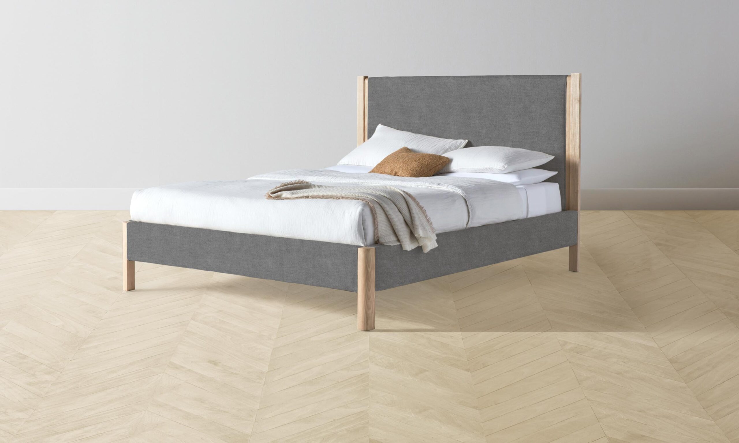 The Thompson bed is an expression of graceful simplicity. It has an ash frame with rounded corners and neat upholstery along the headboard, foot rail, and sides, creating a perfect balance of rigidity and softness.