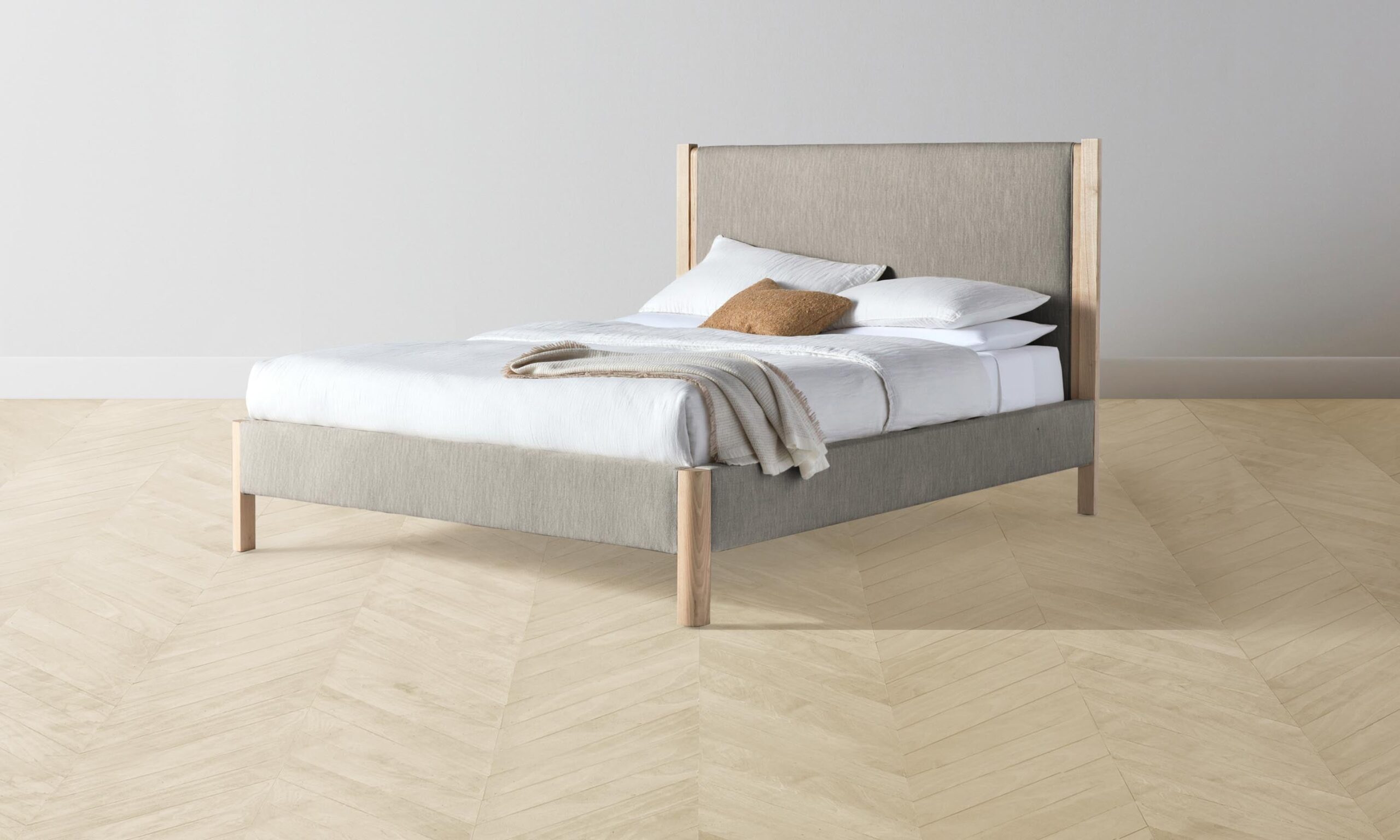The Thompson bed is an expression of graceful simplicity. It has an ash frame with rounded corners and neat upholstery along the headboard, foot rail, and sides, creating a perfect balance of rigidity and softness.