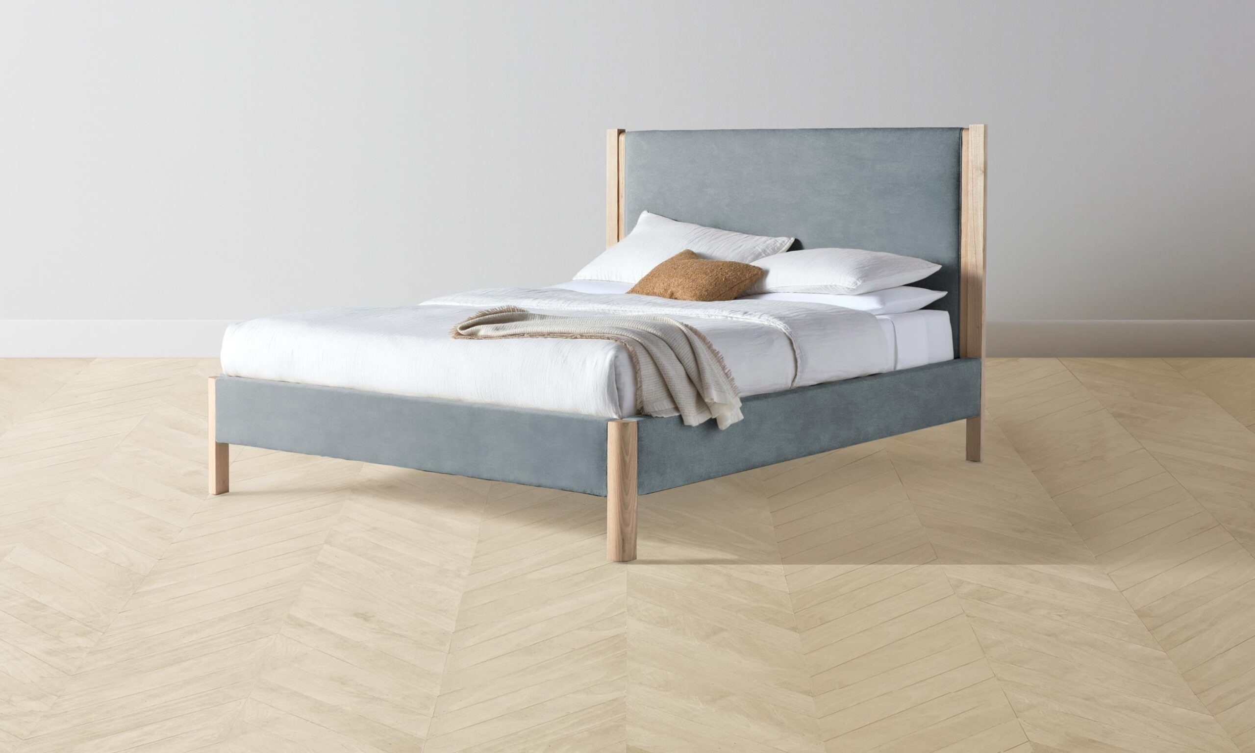 The Thompson bed is an expression of graceful simplicity. It has an ash frame with rounded corners and neat upholstery along the headboard, foot rail, and sides, creating a perfect balance of rigidity and softness.