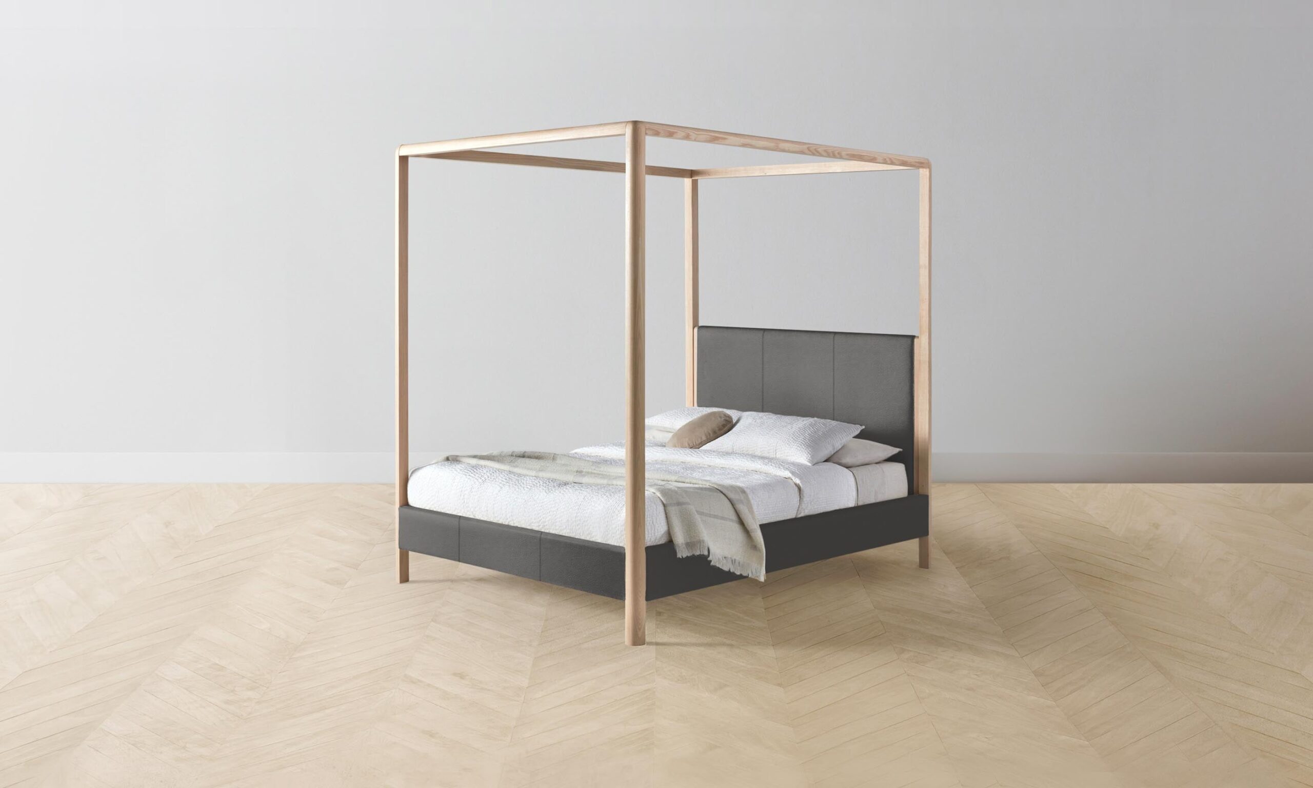 The Thompson Canopy Bed – Pebbled Leather Ash