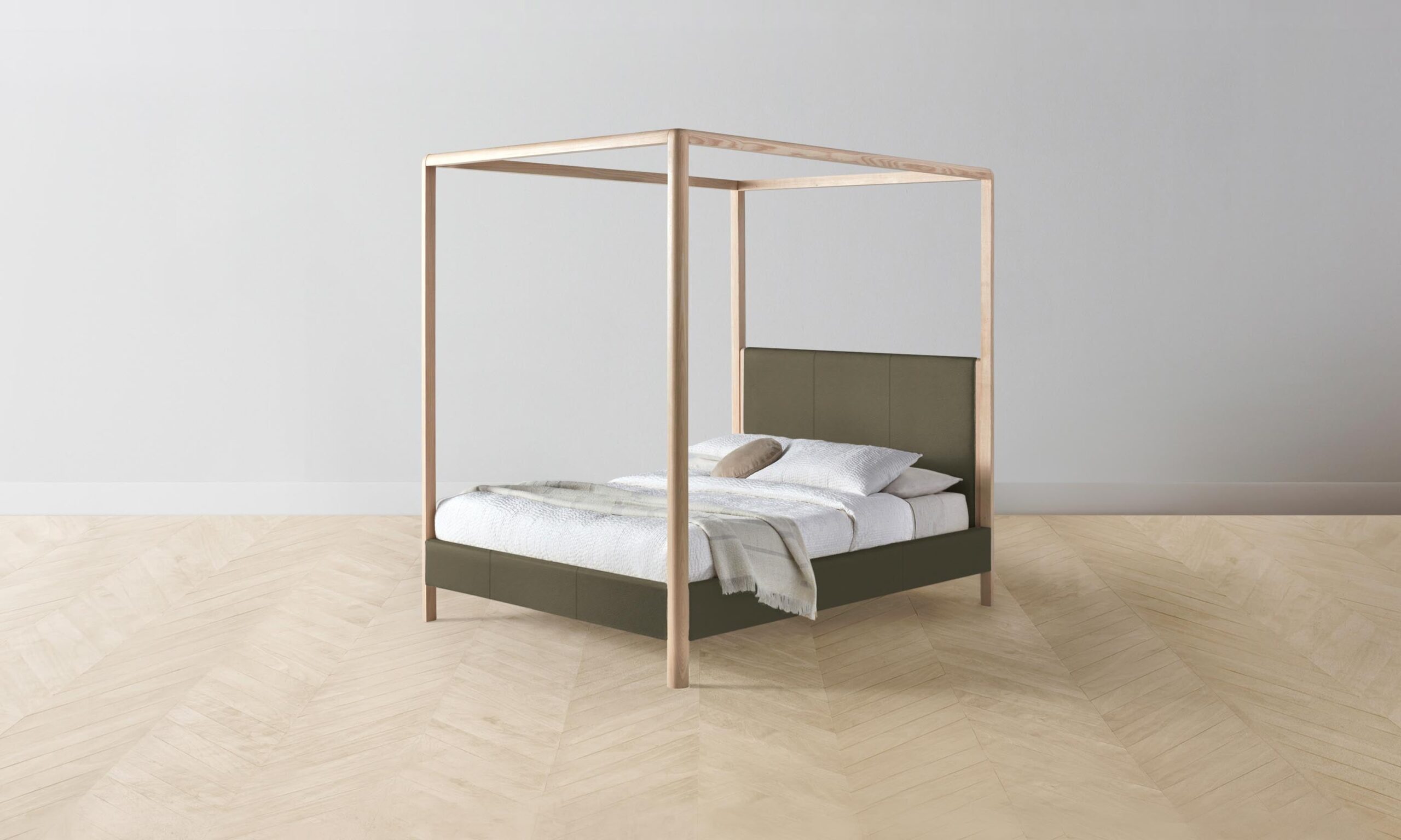 The Thompson Canopy Bed – Pebbled Leather Truffle