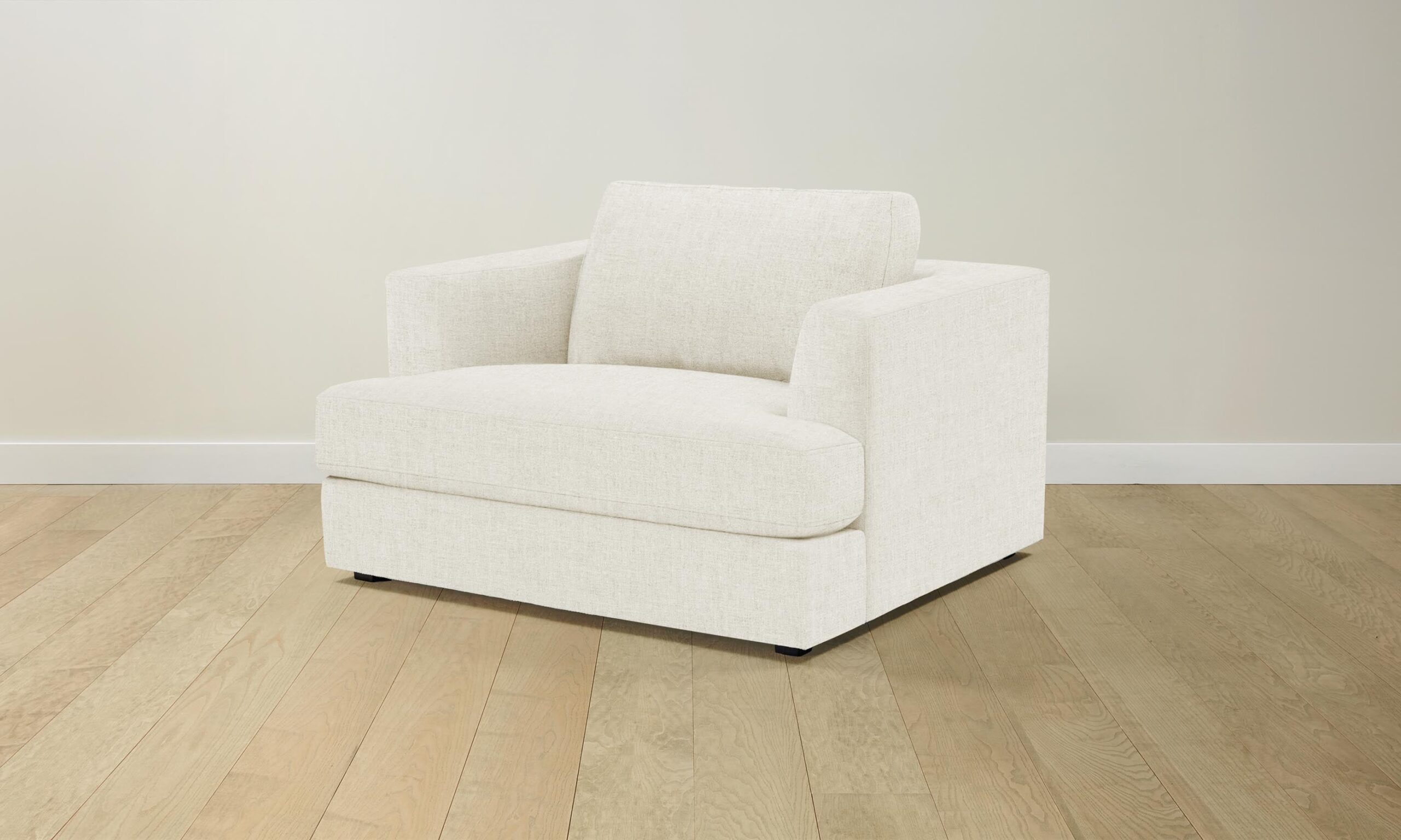 With bold proportions and a low-lying silhouette, the Varick chair-and-a-half makes a contemporary statement. Its generous arms and deep seat envelop the body, while impeccable upholstery offers a sleek finish.