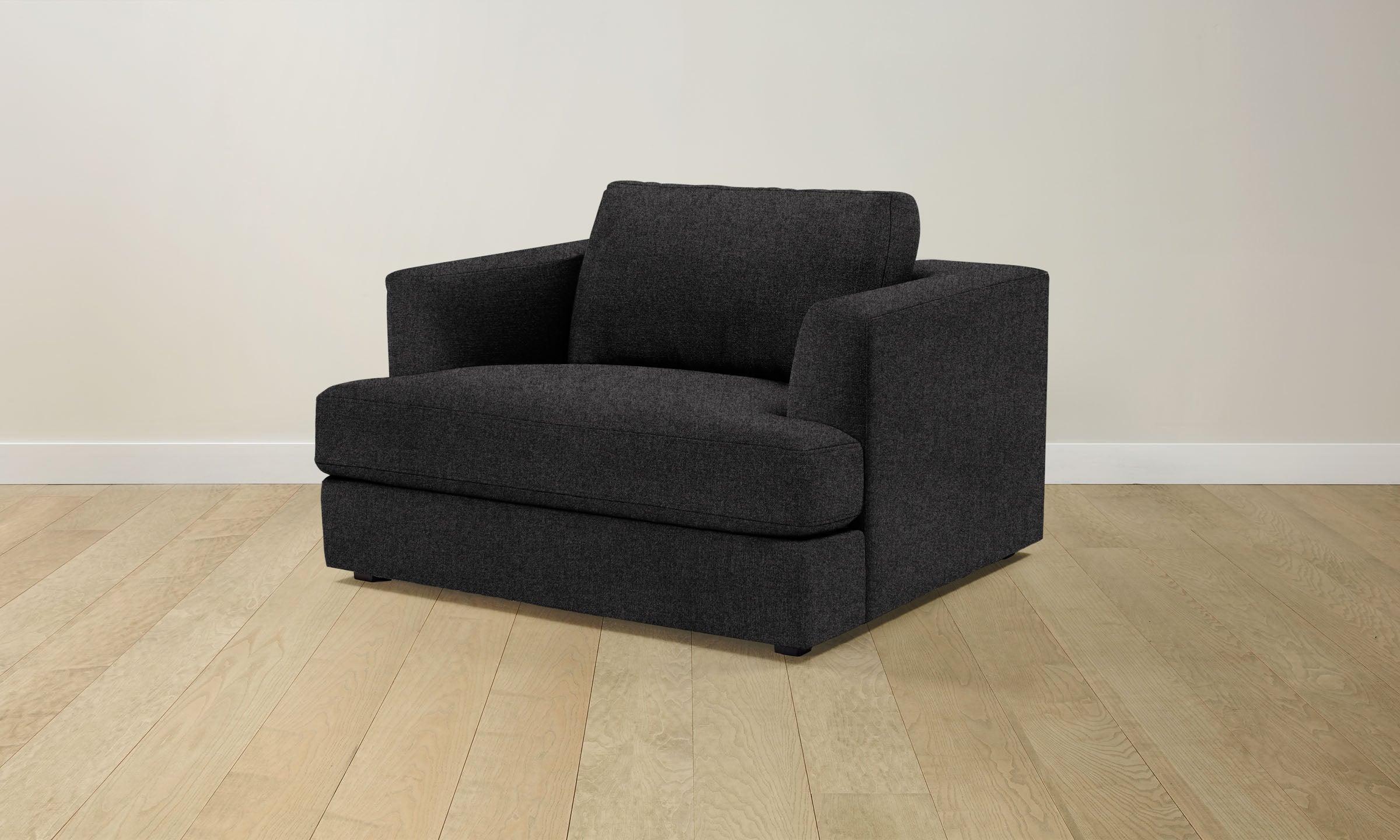With bold proportions and a low-lying silhouette, the Varick chair-and-a-half makes a contemporary statement. Its generous arms and deep seat envelop the body, while impeccable upholstery offers a sleek finish.