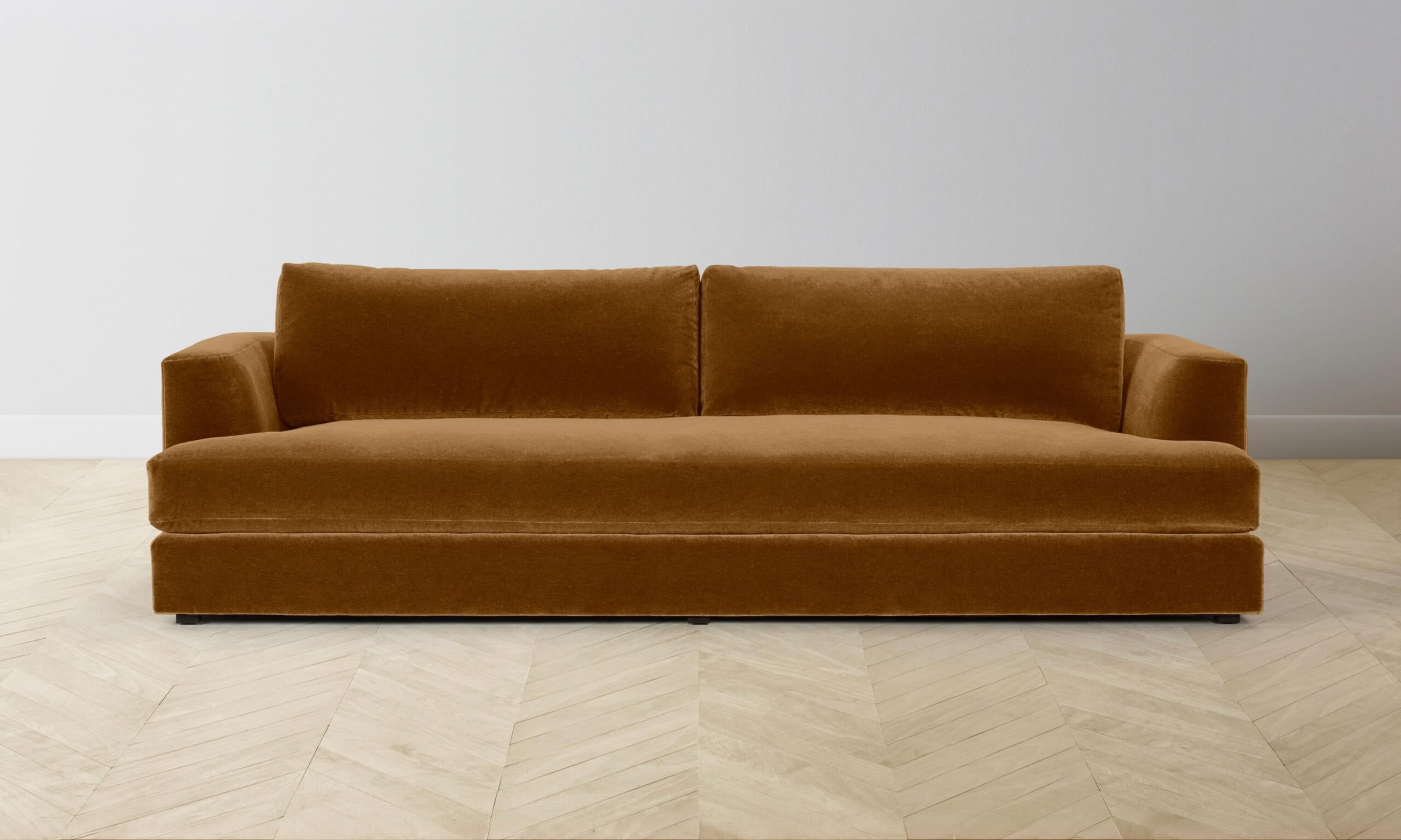 With bold proportions and a low-lying silhouette, the Varick sofa makes a contemporary statement. Its generous arms and deep seat envelop the body, while impeccable upholstery offers a sleek finish.