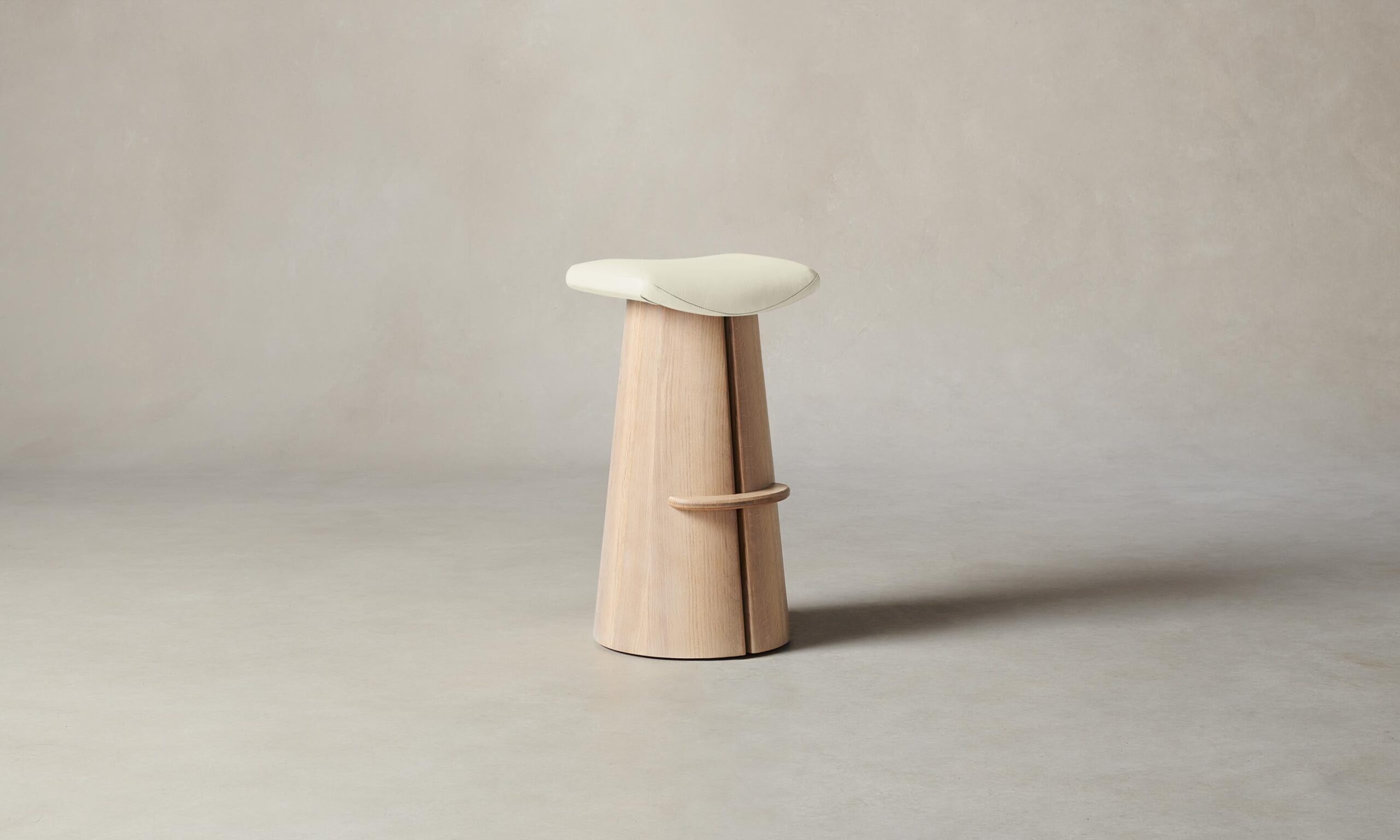 A contemporary interpretation of a classic saddle stool, the Weston has a contoured seat and sculptural base with a slit down the center that welcomes a whisper of light to stream through.