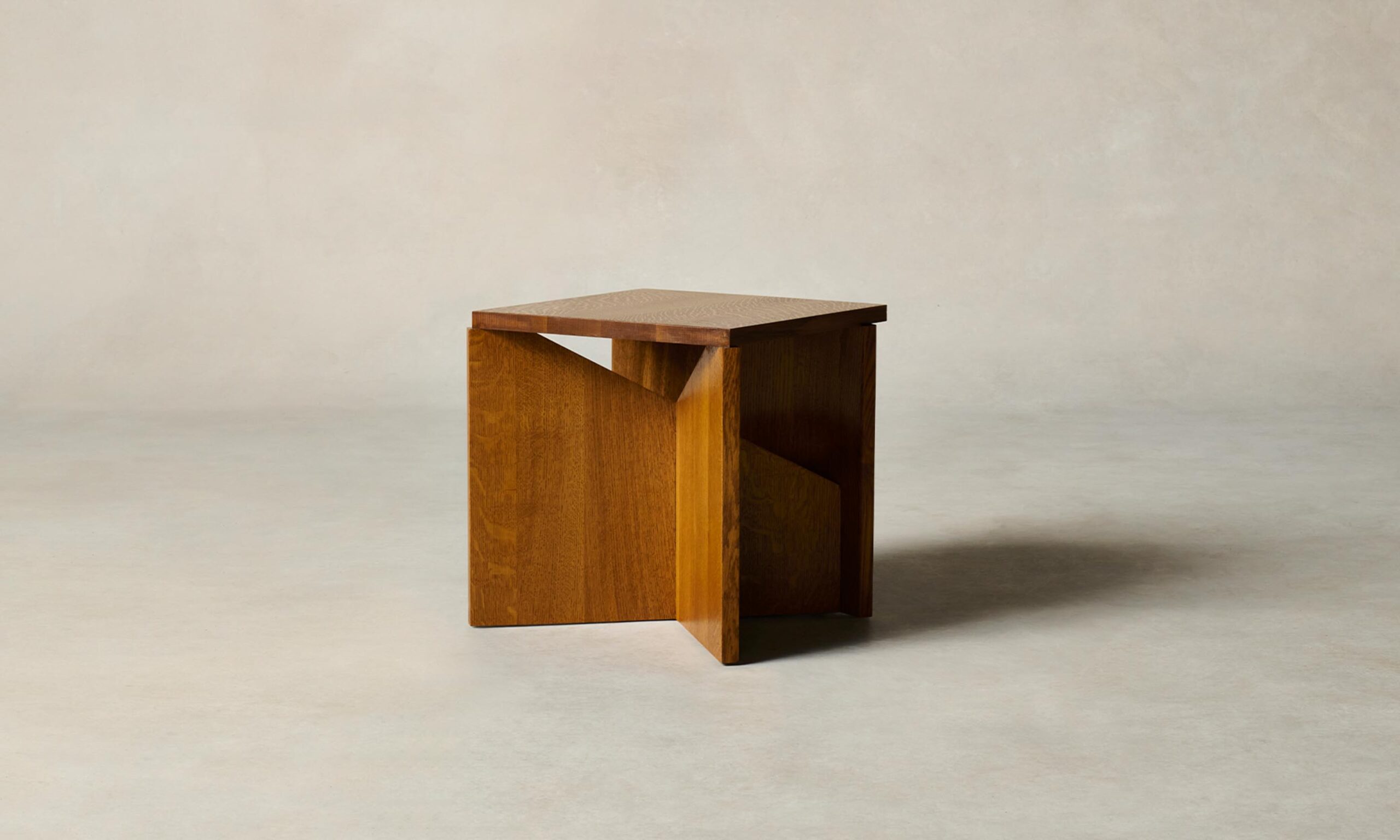 The Wright side table is an artful intersection of positive and negative space. Crafted from planes of white oak or walnut, it bears a void at the base that invites slivers of light to come through.