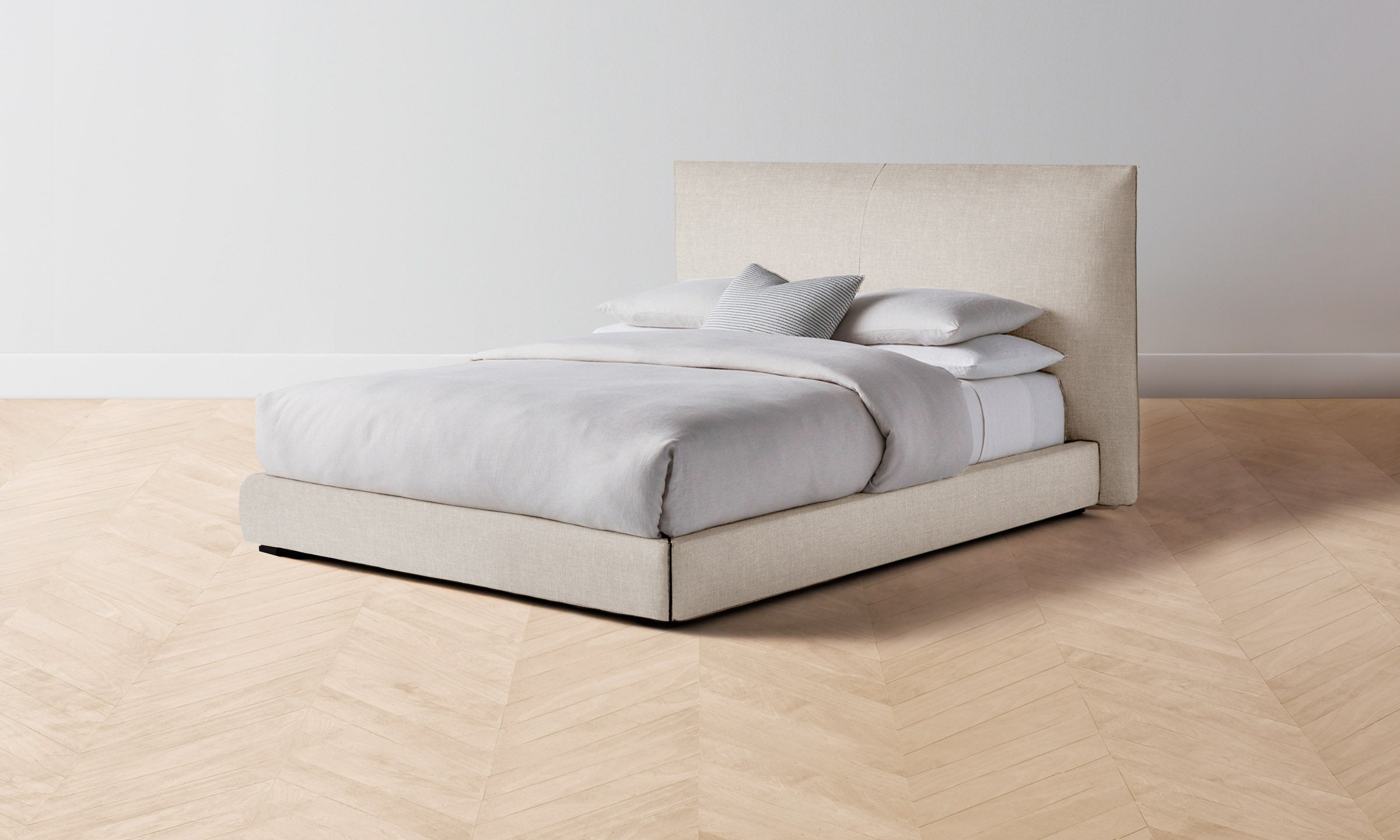 The Wythe bed achieves a perfect balance of ease and sophistication. It features a laid-back, low profile and extended headboard traced with flange seams.