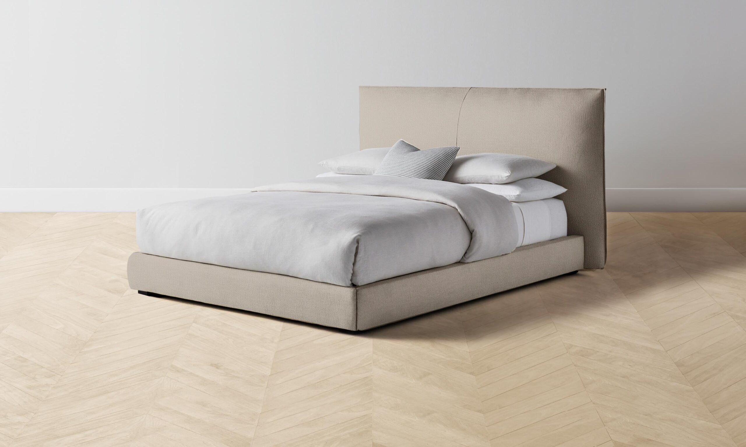 The Wythe bed achieves a perfect balance of ease and sophistication. It features a laid-back, low profile and extended headboard traced with flange seams.