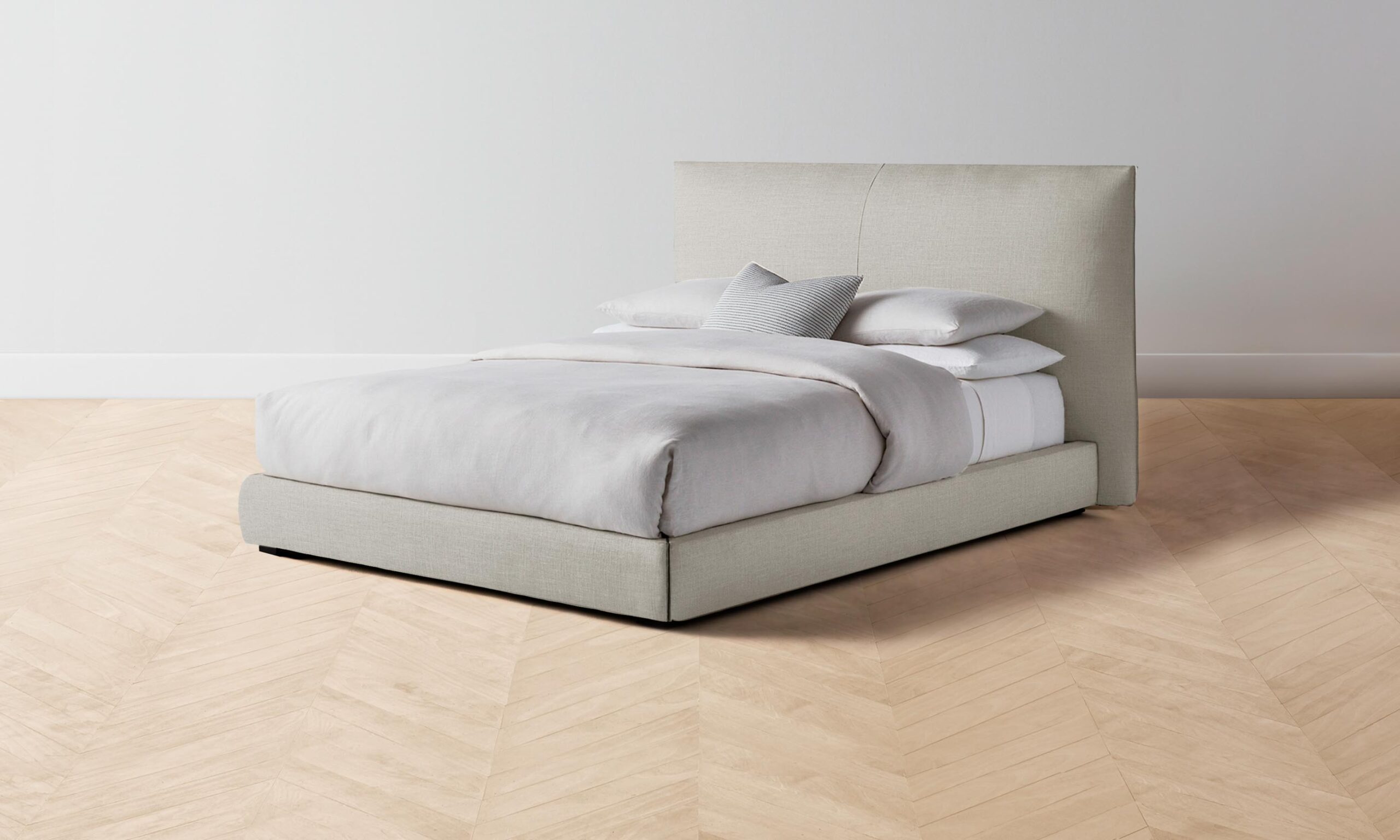The Wythe bed achieves a perfect balance of ease and sophistication. It features a laid-back, low profile and extended headboard traced with flange seams.