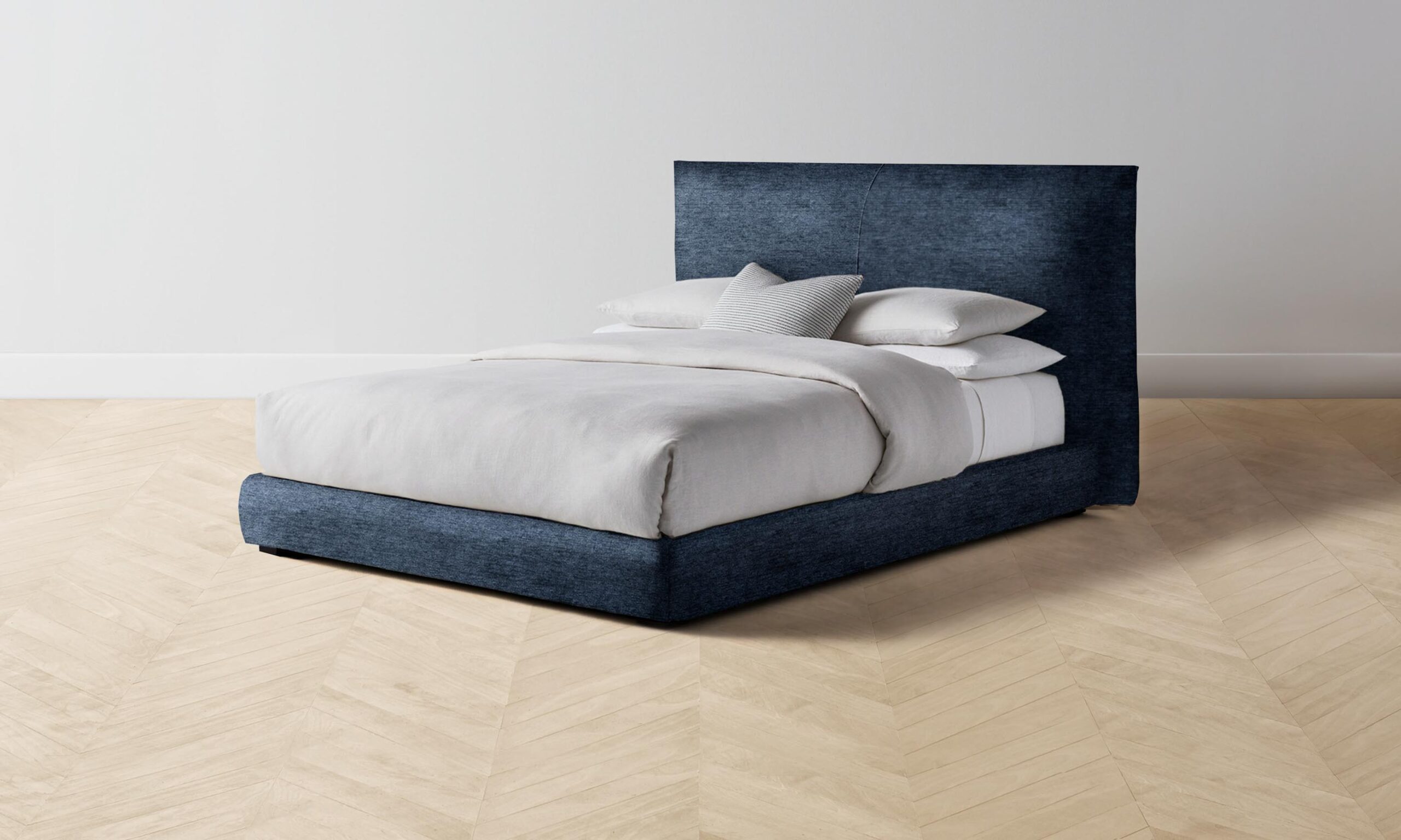 The Wythe bed achieves a perfect balance of ease and sophistication. It features a laid-back, low profile and extended headboard traced with flange seams.