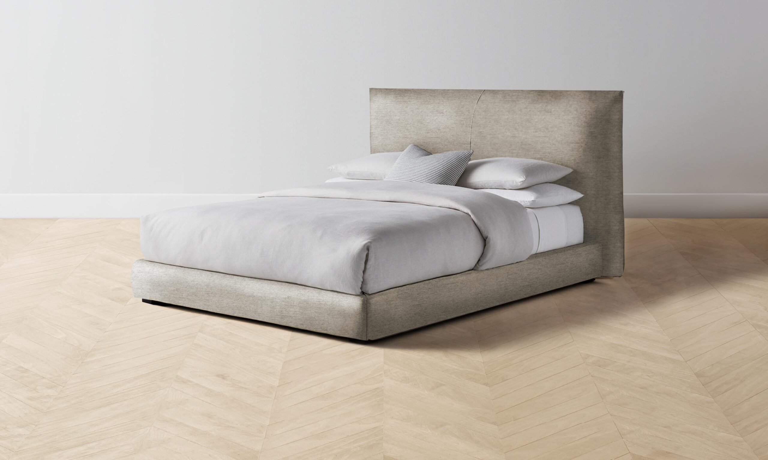 The Wythe bed achieves a perfect balance of ease and sophistication. It features a laid-back, low profile and extended headboard traced with flange seams.