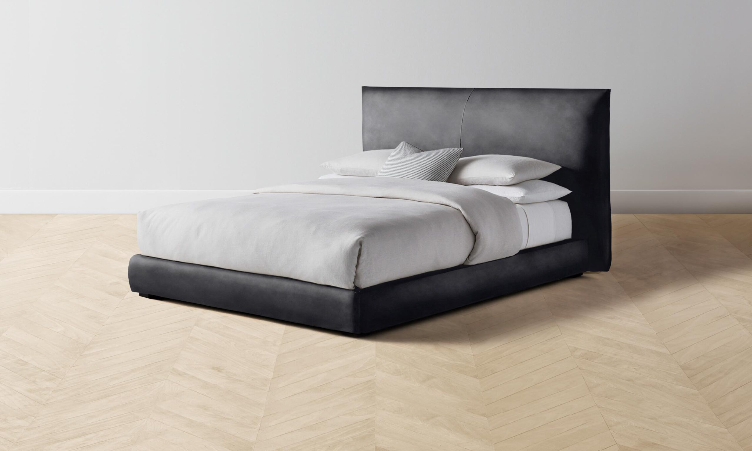 The Wythe bed achieves a perfect balance of ease and sophistication. It features a laid-back, low profile and extended headboard traced with flange seams.