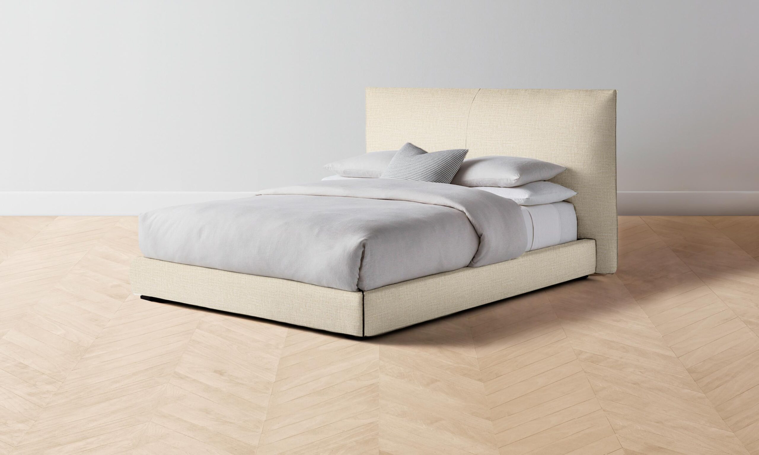 The Wythe bed achieves a perfect balance of ease and sophistication. It features a laid-back, low profile and extended headboard traced with flange seams.