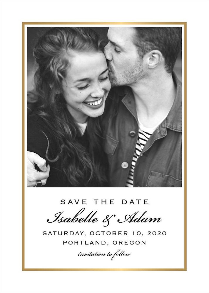 This Thin Line Frame customizable card says “save the date” with a poise and charm fit for the occasion. Created by the designers at Paper Source. Printed on bright white, ultra smooth 130 lb. card stock. Paper is FSC and SFI certified and made from 10% post-consumer recycled waste.