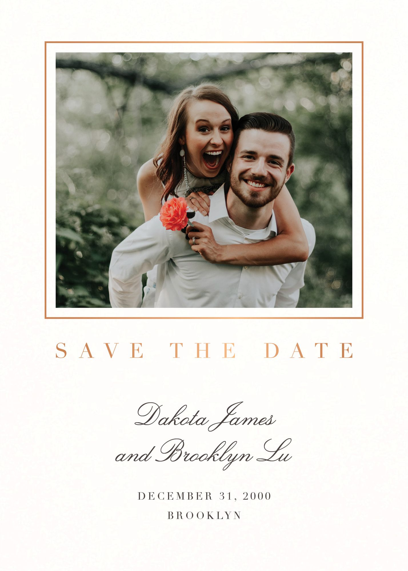 Featuring a timeless design and exquisite simplicity, this Paperless Post design announces your special day with grace and style, inviting your loved ones to mark their calendars for a moment that will be etched in time. Printed on Mohawk superfine white 130 lb. card stock that is soft to the touch and matches our superfine white envelopes. This paper is FSC certified, with 30% post-consumer recycled content, and made using wind power. Need to send your announcement ASAP? You can send this design digitally with our partners at Paperless Post.