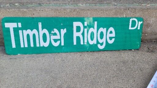 Timber Ridge Metal Street Sign Green 6″ X 24″ Vintage Reflective RARE Cave Man