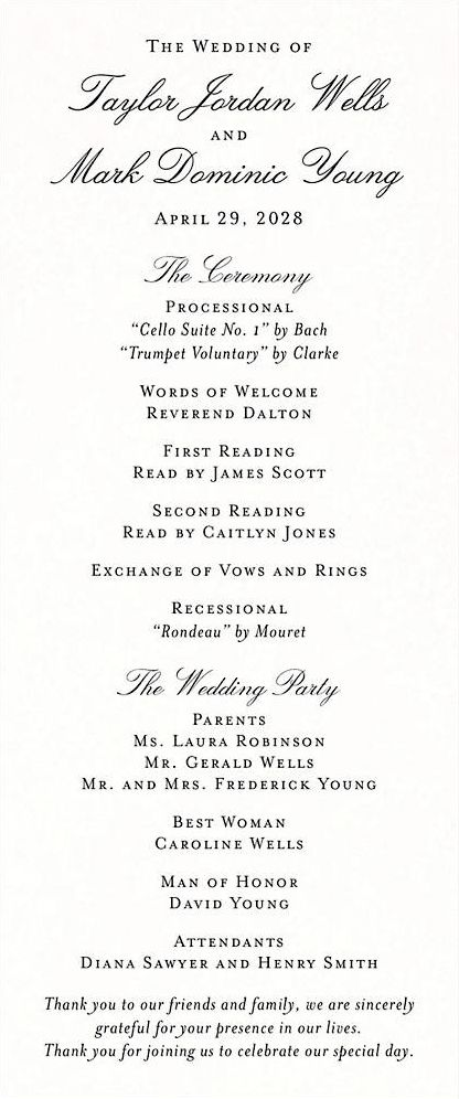 Pair these programs with your Timeless Elegance invitation suite, or mix and match to your style from any suite in our wedding collection. Printed on Mohawk superfine white 130 lb. card stock that is soft to the touch and matches our superfine white envelopes.. This paper is FSC certified, with 30% post consumer recycled content, and made using wind power. This design was created by our in-house designers at Paper Source.