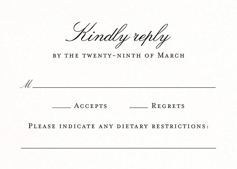 Pair these response cards with your Timeless Elegance invitation suite, or mix and match to your style from any suite in our wedding collection. Printed on Mohawk superfine white 130 lb. card stock that is soft to the touch and matches our superfine white envelopes. This paper is FSC certified, with 30% post consumer recycled content, and made using wind power. This design was created by our in-house designers at Paper Source.