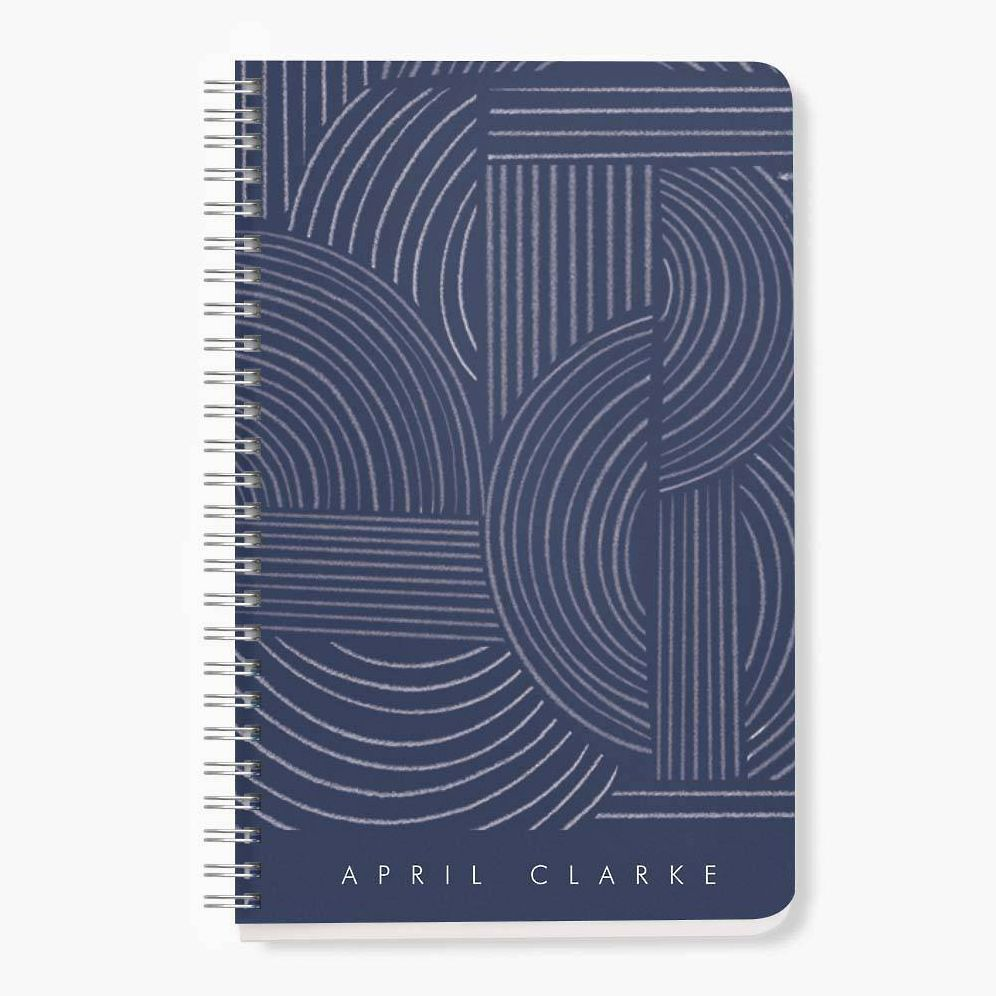 Abstract swirls of white on a deep navy backdrop pattern the front of this elegant journal designed by Paper Source.
